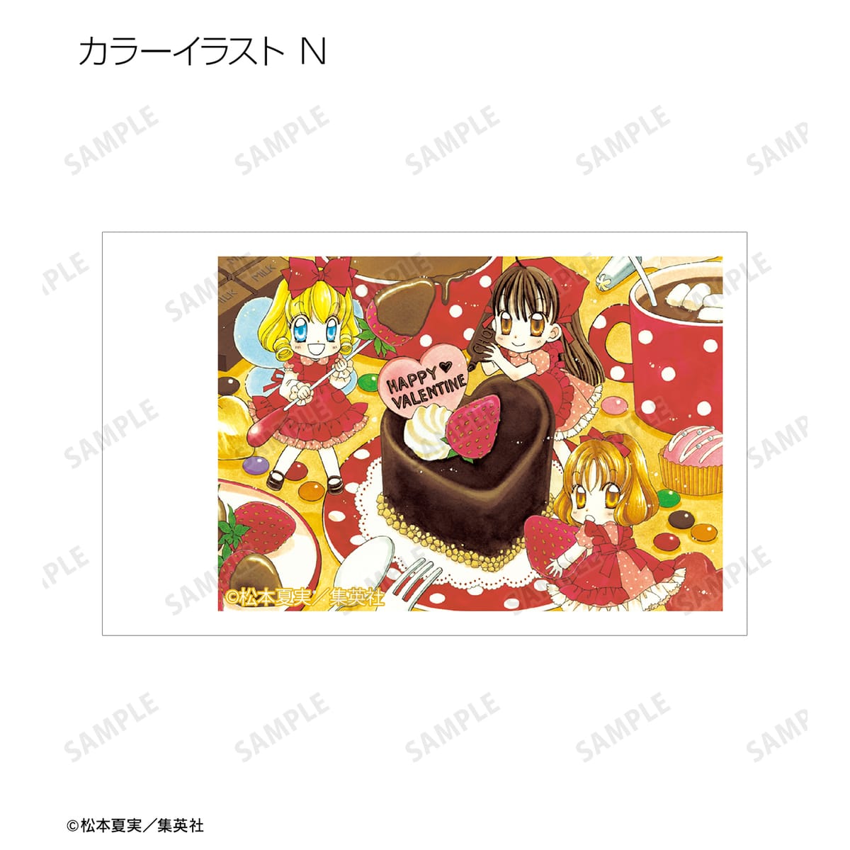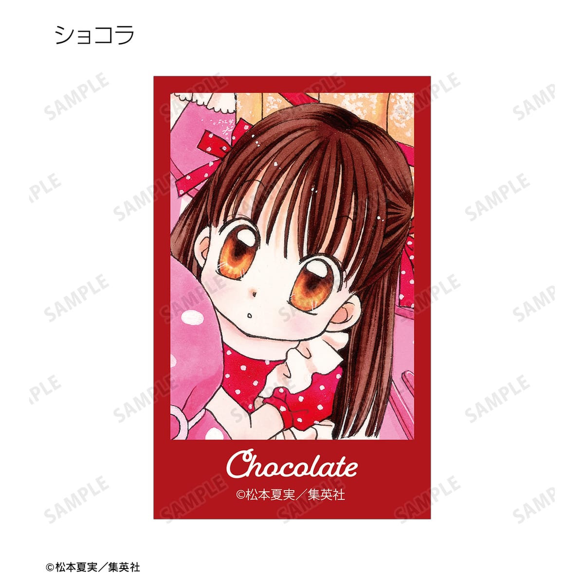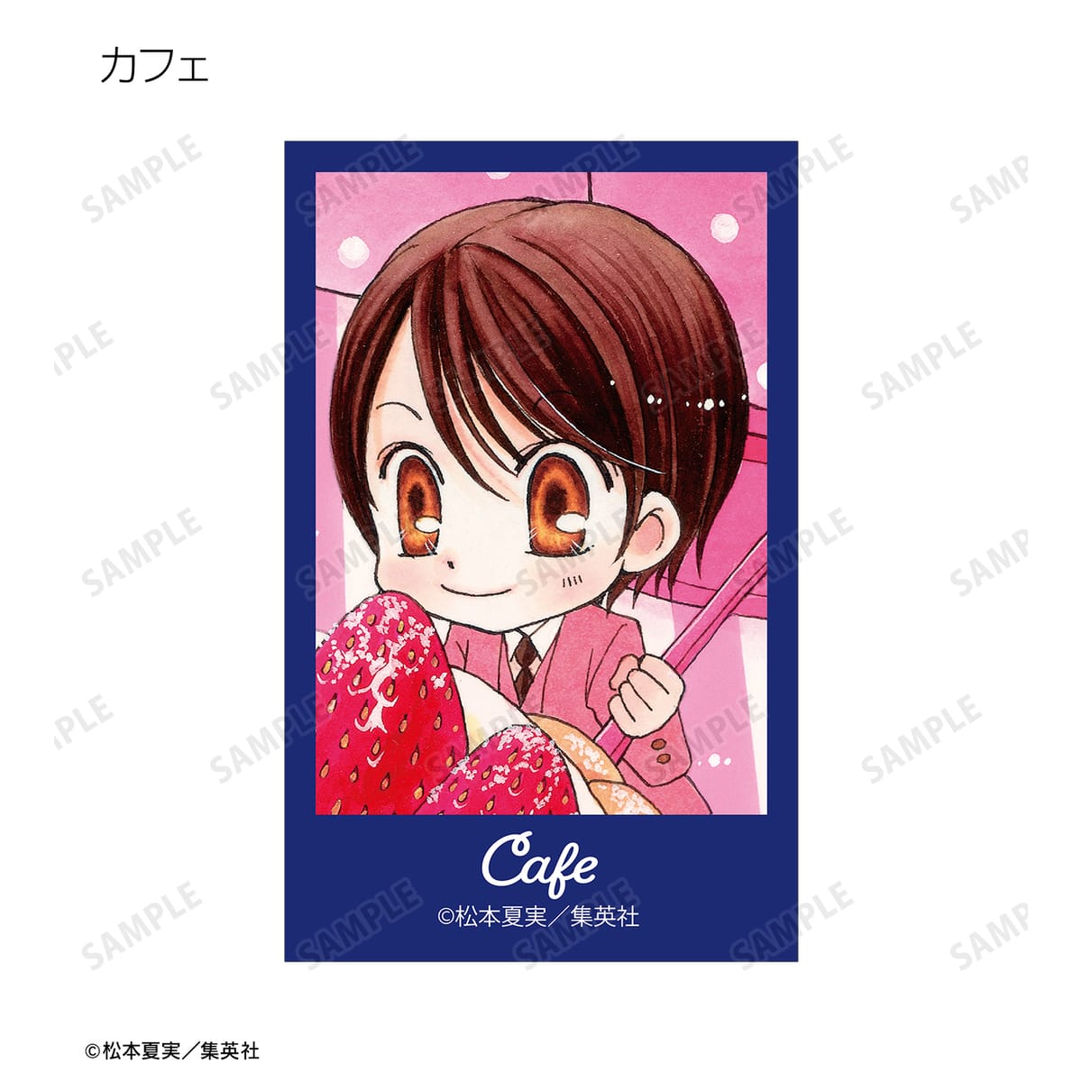 天野いちご、樫野真、安堂千乃介、花房五月、バニラ、ショコラ、キャラメル、カフェの原作イラスト、原作コマイラストをインスタントカメラ風のイラストカードに仕上げました。