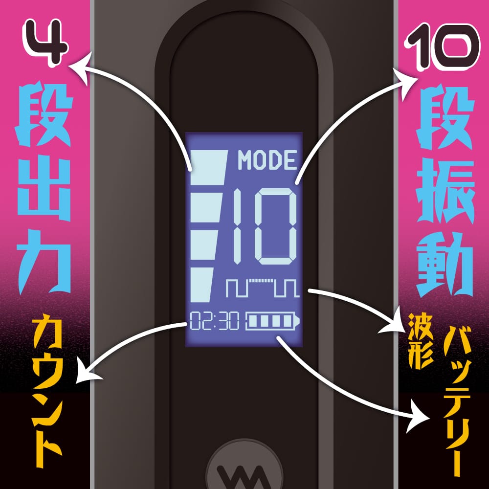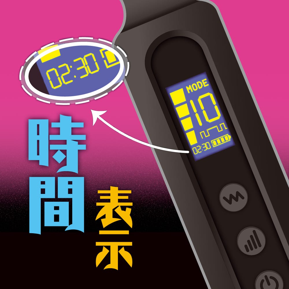 【限界に挑戦】使用中の強さなどを目視できるモニターを搭載!使用開始してからの時間もわかるので、どれくらい耐久出来るのか試すことが可能です。自分やパートナーの限界に挑戦してみませんか!?あなたは果たして何秒でイカせられるか!【電池表示】電池の状態も表示されるので、いつ充電すればいいかも一目でわかります!使用中に電池が切れるストレスを感じることはありません!