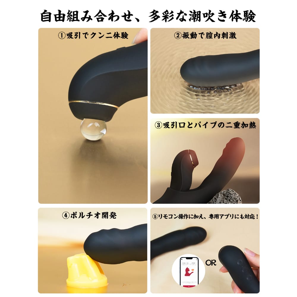 吸引・ピストン・振動・温感・アプリ操作・リモコン操作の多機能バイブ!