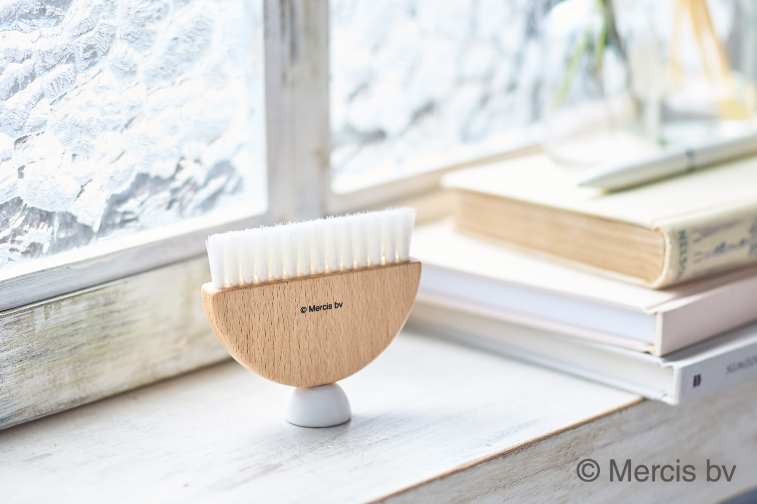机のほこりなどをお掃除できるコンパクトサイズのデスクブラシ。自立型で、