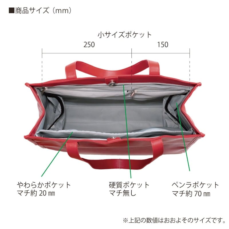 持ち手が長く肩に掛けられるうえ、自立もする便利なトートです。