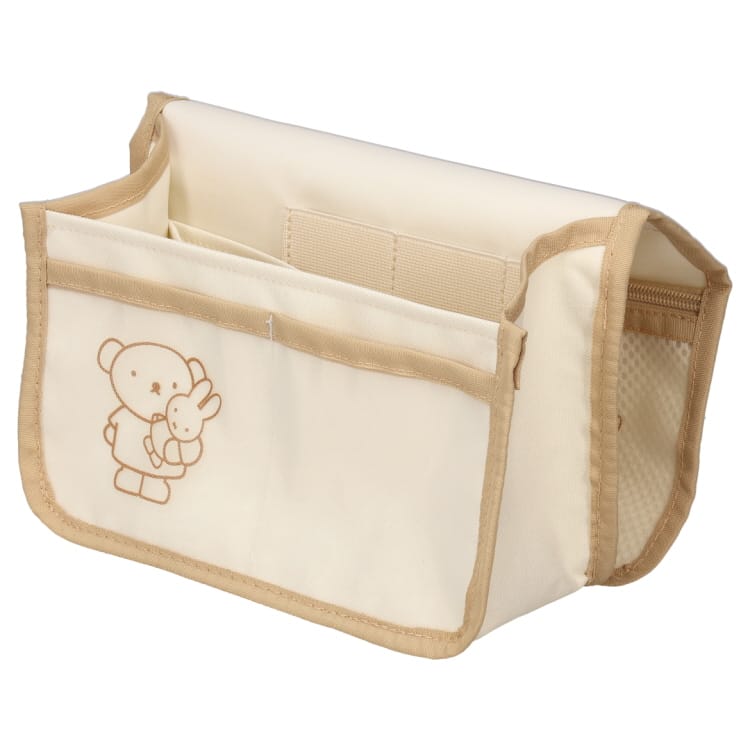 全8ポケットで荷物を分けて収納!便利なバッグインバッグ。内ポケットにもそれぞれミッフィーとボリスのプリントがされています。フタは面ファスナーで留めることが出来ます。ボトルホルダーには350mlペットボトルがすっぽり入ります。