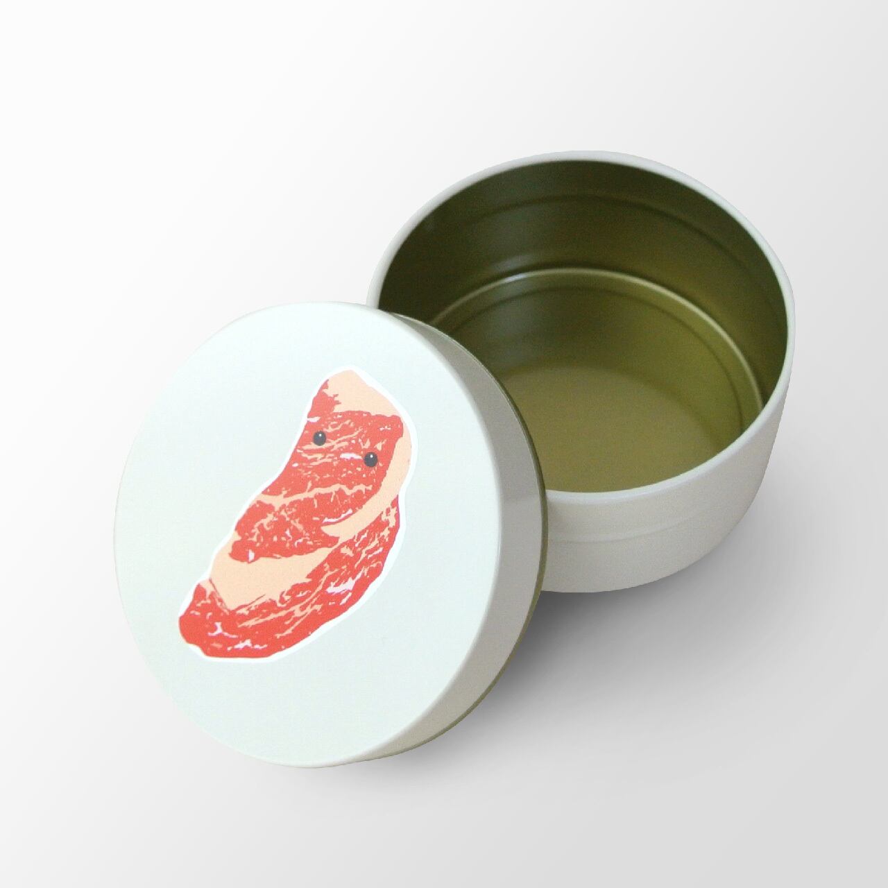 謎のキャラクター、おにくさんをプリントした丸缶。