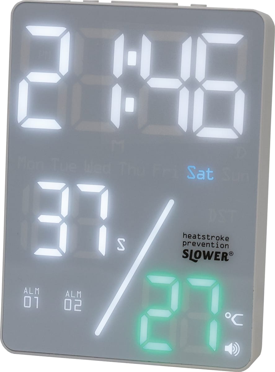 コンパクトながら優れた視認性を誇り、室温が高温になると温度表示の色が変化し、アラート音(ピピピ)で室温調整を促します。