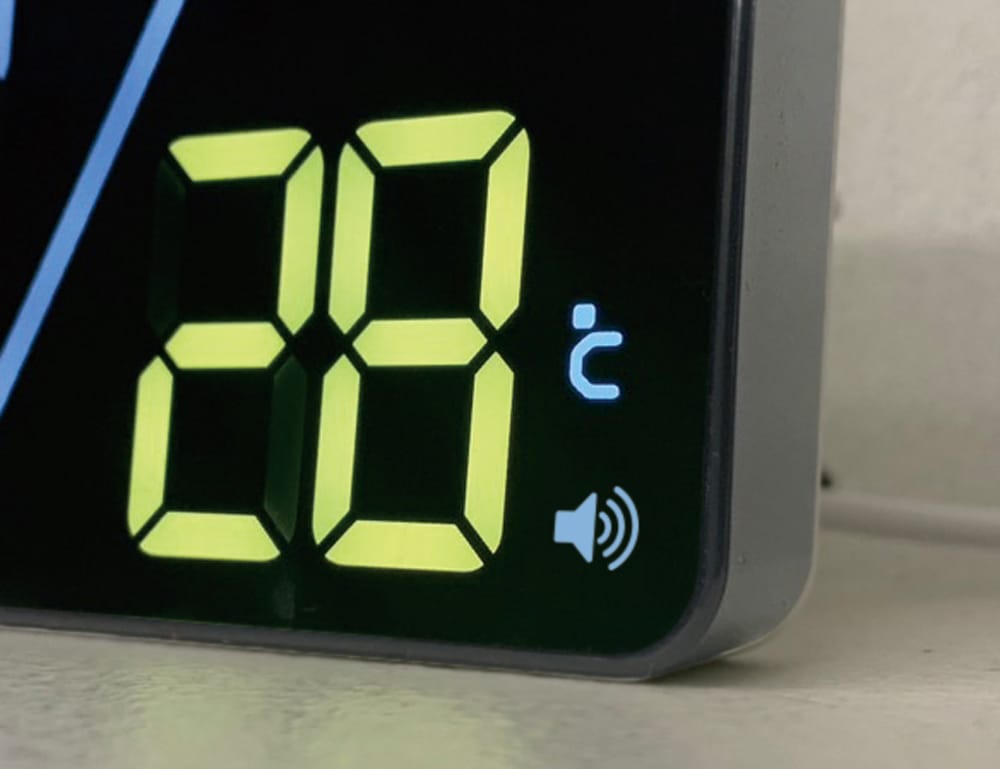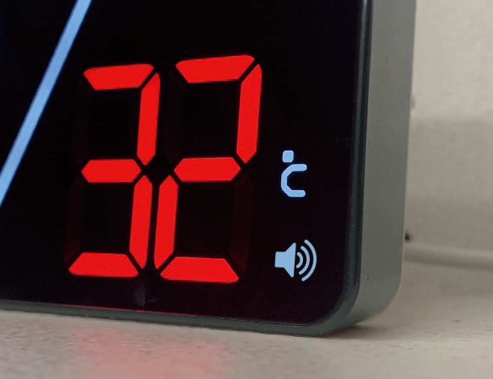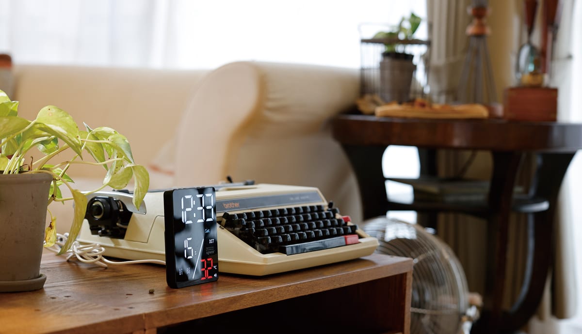 コンパクトながら優れた視認性を誇り、室温が高温になると温度表示の色が変化し、アラート音(ピピピ)で室温調整を促します。
