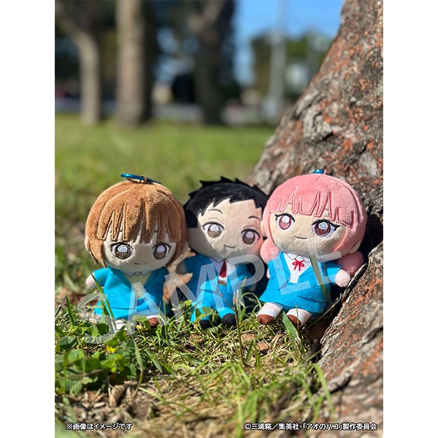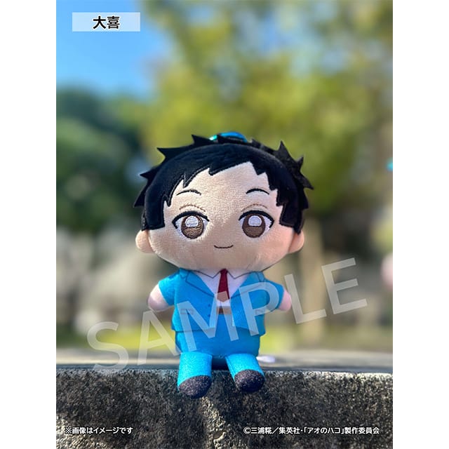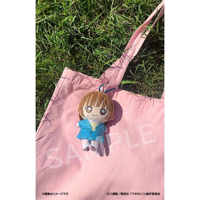 おすわりポーズの可愛いマスコット。前髪ラインの刺繍がポイントです。カラビナは「アオのハコ」カラーをイメージしました。