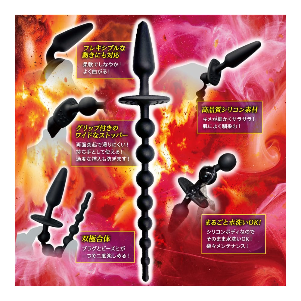 「ア●ルプラグ」と「ア●ルビーズ」が一つになった!一つで二種類楽しめる、コスパ抜群のア●ルグッズがここに登場!片方は、太さ26ミリと小ぶりなストッパーの「ア●ルプラグ」。もう片方は、大小8珠が連なるストレートボディの「ア●ルビーズ」。異なるア●ルグッズがこれひとつで楽しめる、幅広いプレイバリューに溢れたアイテムです! 「ア●ルプラグ」は、初めてでも嬉しいスリムサイズ。ストッパー部分には、グリップ凹凸付きのワイドタイプです。「ア●ルビーズ」は、直径8~23ミリの大小サイズが異なる8珠モデル。ベーシックなストレート形状となるスタンダードタイプです。 本体素材には、キメ細かくサラサラ質感の高品質シリコン素材を採用。柔軟でよく曲がるだけでなく、水洗い可能でメンテナンスも簡単です。 プラグとビーズの夢の共演、双極合体による悶絶快感をお楽しみください!