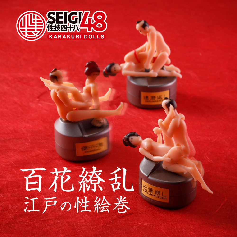 江戸の粋と笑いがゼンマイで動き出す!浮世絵に描かれた"性技四十八手"を、まさかのからくり人形で再現!?その名も『SEIGI48KARAKURIDOLLS』です。ゼンマイを回せば、思わずクスッと笑ってしまうような、江戸の色ごとが艶やかに、そして滑稽に踊り出す。歴史とエロス、そしてユーモアが融合した、まさに"大人のためのジョークグッズ"に仕上げました。現代でも人気の高い?!体位の『松葉崩し』、カクカクと動く様子は江戸時代にも通じる"粋"を感じるかもしれません。観賞用としても、プレゼントとしても話題性抜群!ちょっと疲れた心に、粋な笑いと艶をひとつどうぞ。
