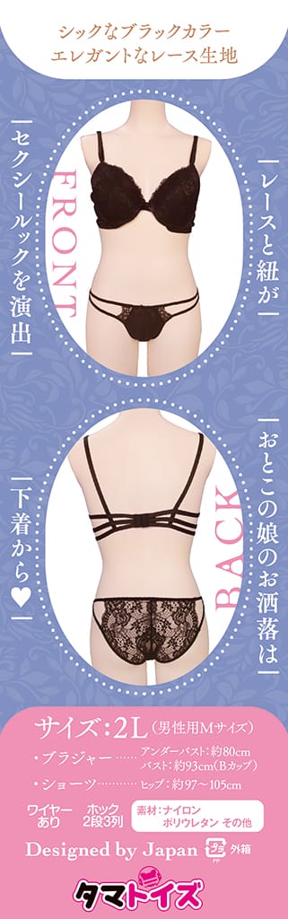 ◆サイズ2L(男性用Mサイズ) 【ブラジャー】アンダーバスト:約80cm バスト:約93cm カップ:Bカップ 【ショーツ】ヒップ:約97~約105cm 素材:ナイロン ポリウレタン その他