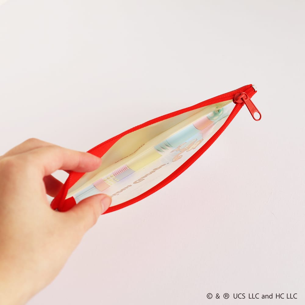 ポップなパターン柄や可愛らしいジョージと動物たちが明るく元気な気持ちにさせてくれるシリーズ。クリア素材のペンポーチです。