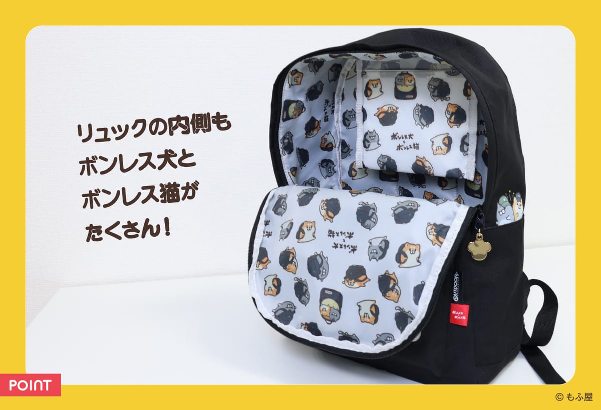 LINEスタンプで人気の「ボンレス犬とボンレス猫」がOUTDOOR PRODUCTSのリュックになりました!イラストレーターのもふ屋さん描き下ろしのオリジナルアートをふんだんに使った可愛らしいデザインと、OUTDOOR PRODUCTSの機能性を兼ね備えたリュックです!