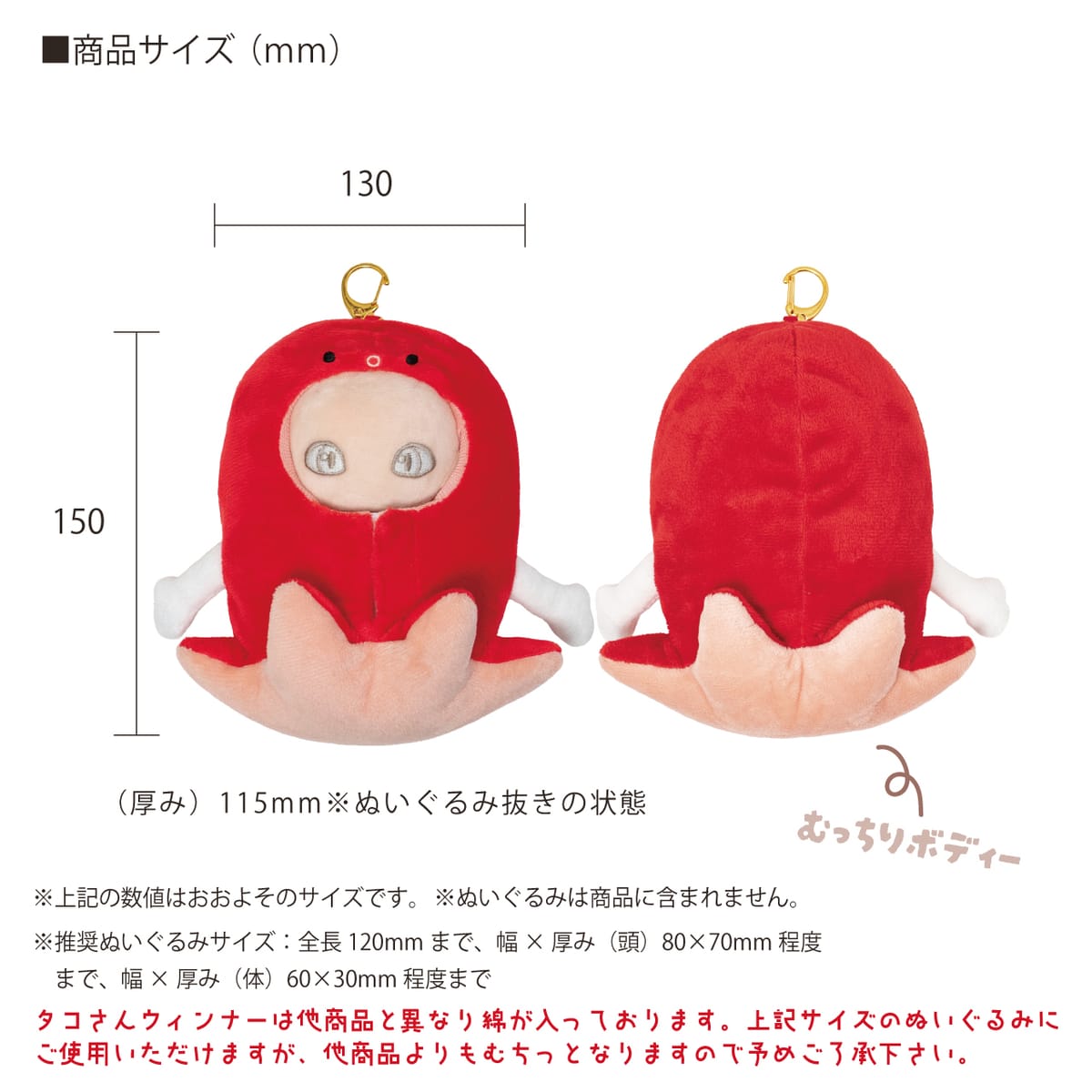 ※タコさんウィンナーは他商品と異なり着ぐるみ自体に綿が入っております