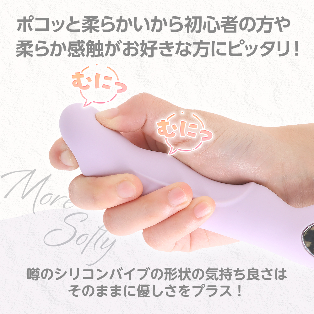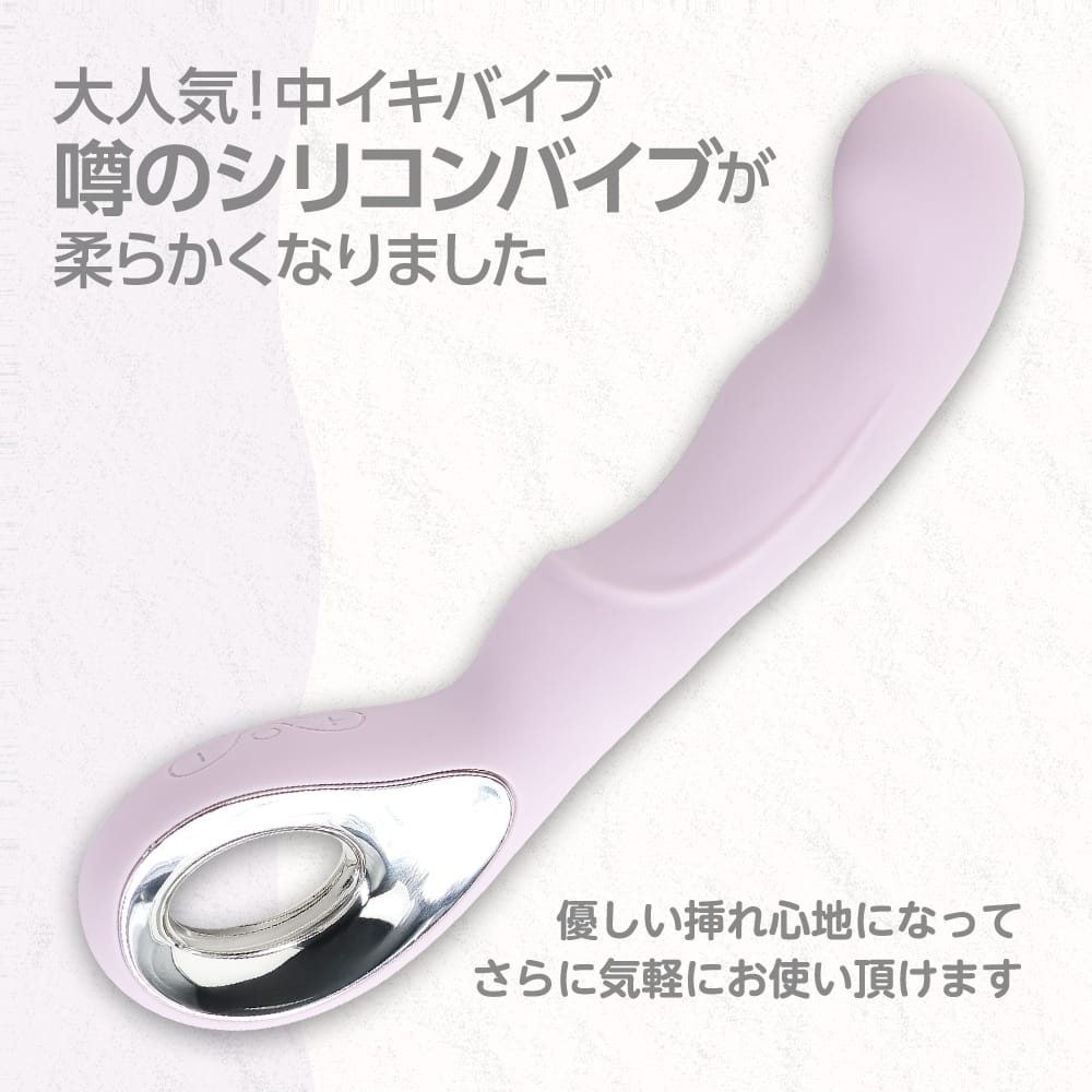 大人気!噂のシリコンバイブが柔らかくなりました。先端と真ん中部分に空洞を作りぷにっと挿入感と「しなり感」で優しい入れ心地を実現!ユーザー様からの「気持ち良いけど柔らかい部分が欲しい」「先端がもう少し優しい感触だと抵抗感も無く、挿れやすくなるのに…」といったお声を基に内部パーツを見直しました。優しくなっても計算され尽くした形状による挿入快感と振動刺激による気持ちよさは変わりません。実用性の高い10パターンアクションに充電時間60分で40分の連続使用が可能なリチウムイオンバッテリー搭載(使用環境により大幅に増減します。)高レベルの防水性能なので使用後はしっかりゴシゴシ洗えて衛生的に長くお使い頂けます。優しいと気持ち良いの両立を実現したソフトバイブです。