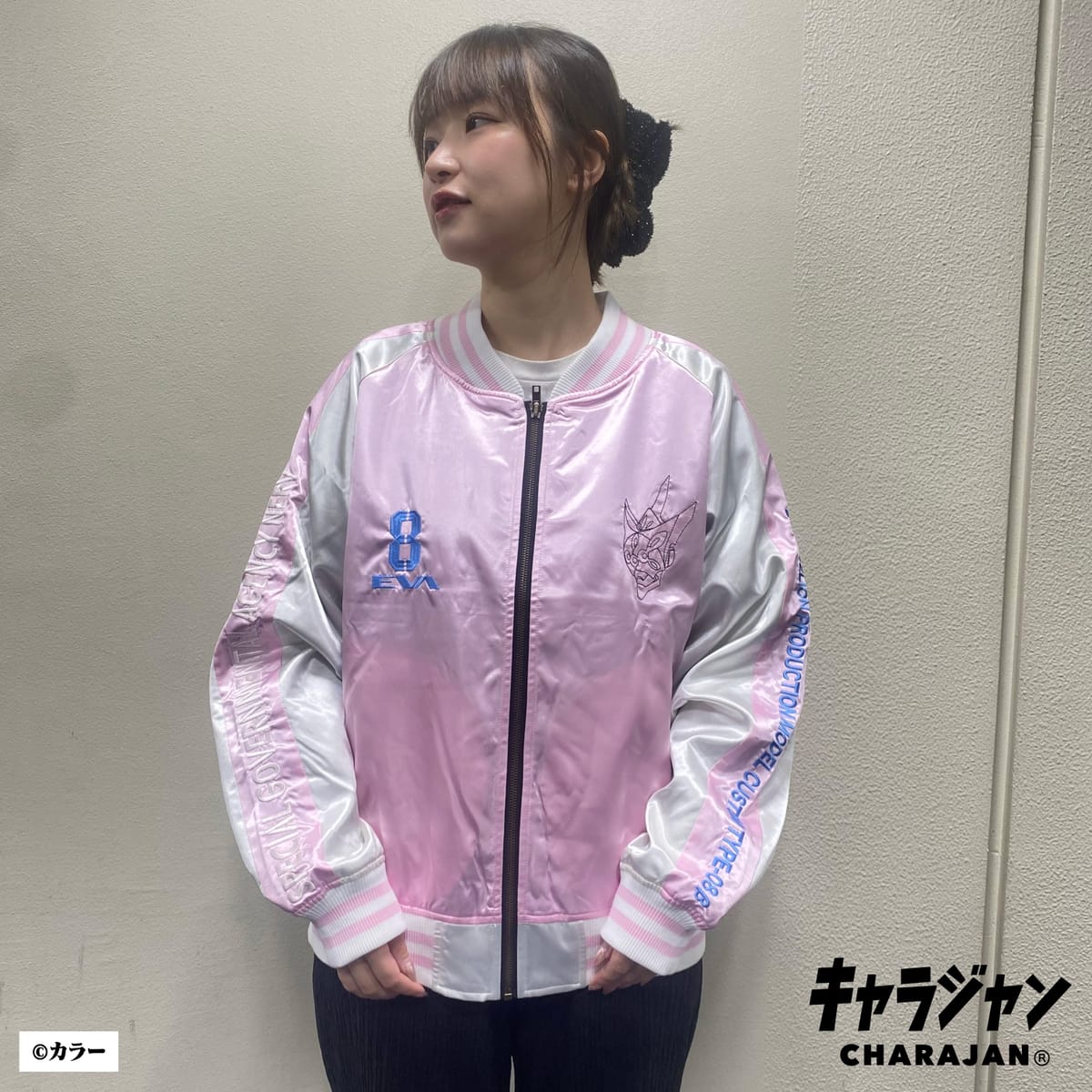 エヴァンゲリオンに登場する「真希波・マリ・イラストイアス」をモチーフにしたスカジャンです。