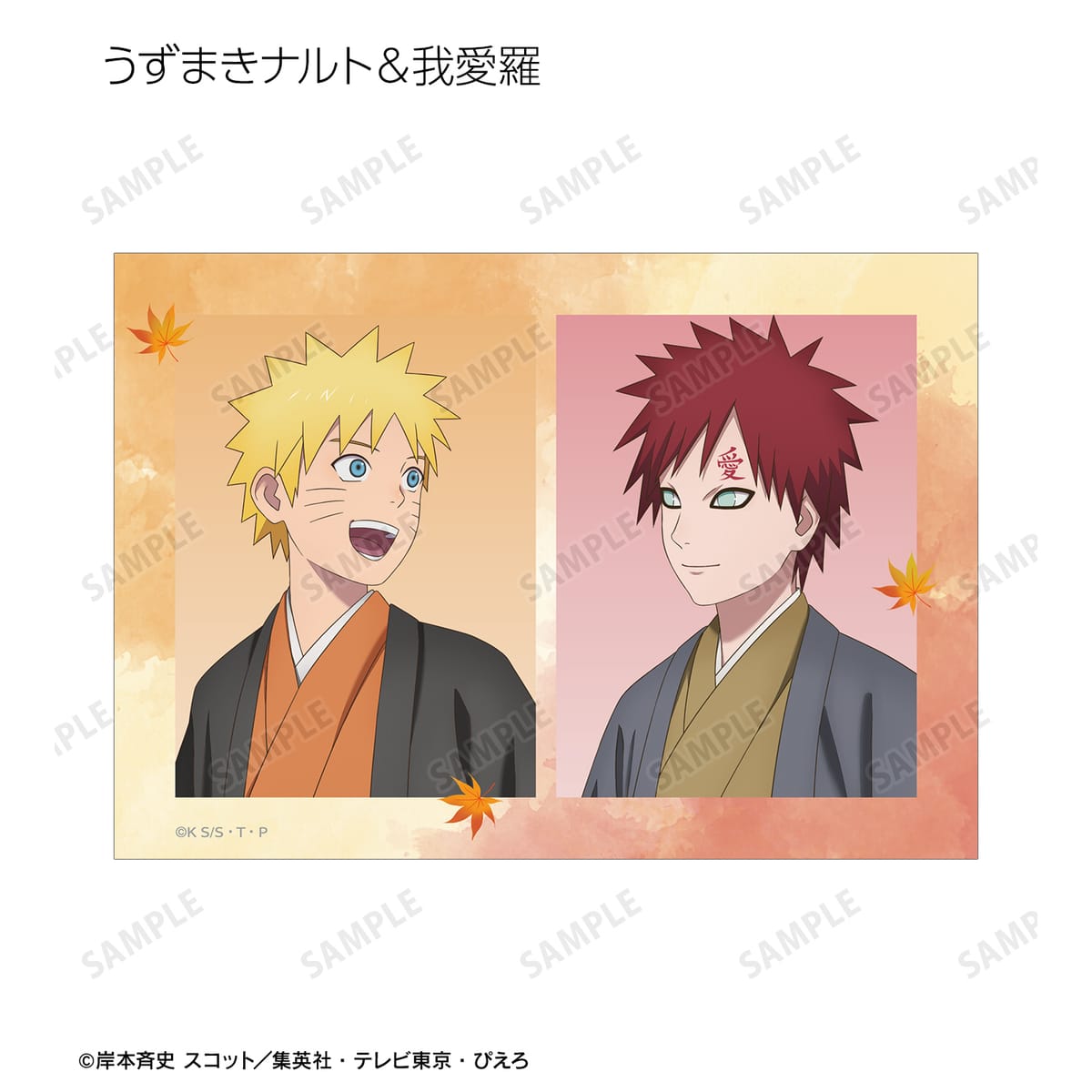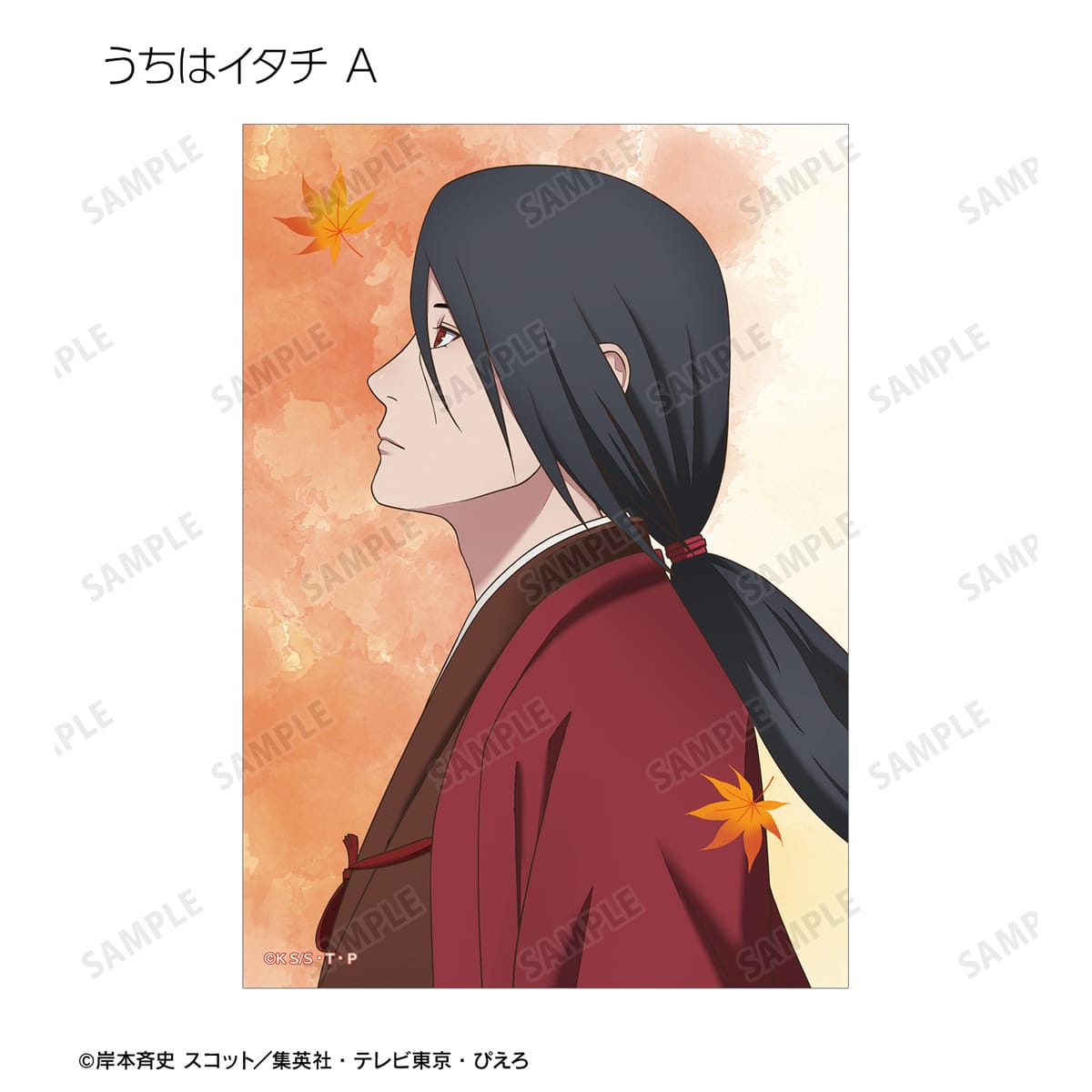 うずまきナルト、うちはサスケ、春野サクラ、はたけカカシ、奈良シカマル、日向ネジ、我愛羅、うちはイタチの描き下ろしイラストをブロマイドに仕上げました。