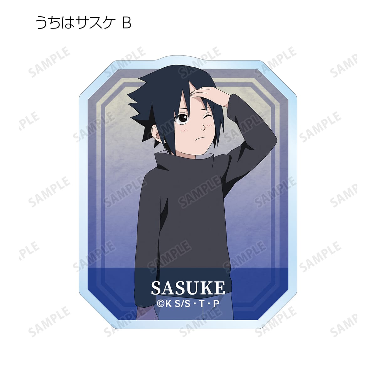 うずまきナルト、うちはサスケ、はたけカカシ、うちはイタチの描き下ろしイラストをダイカットのステッカーに仕上げました。