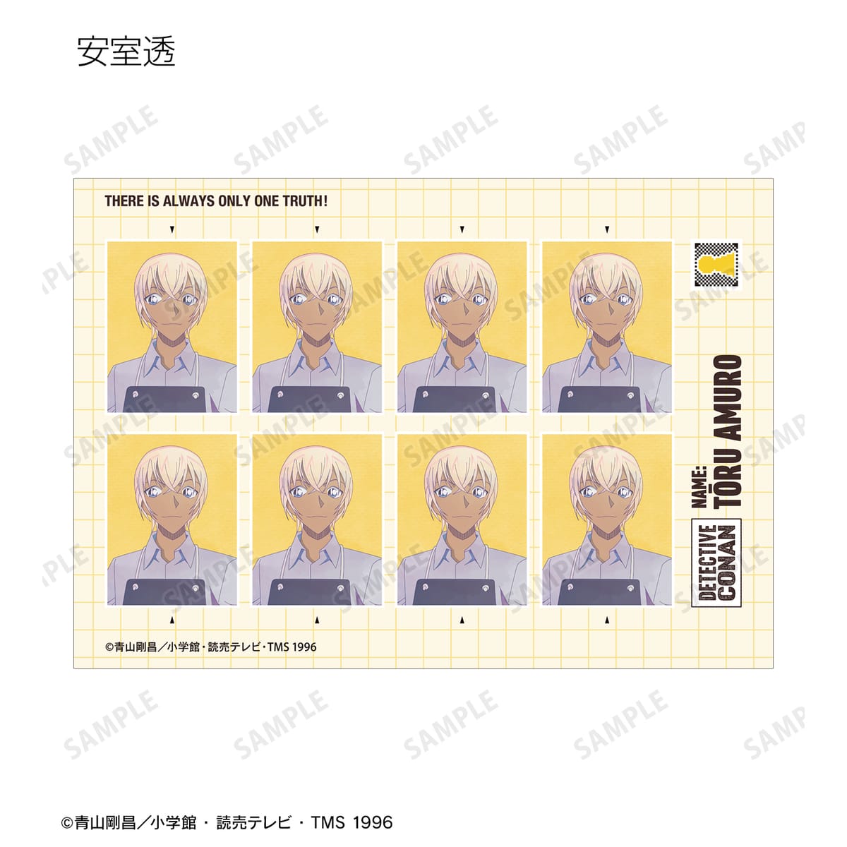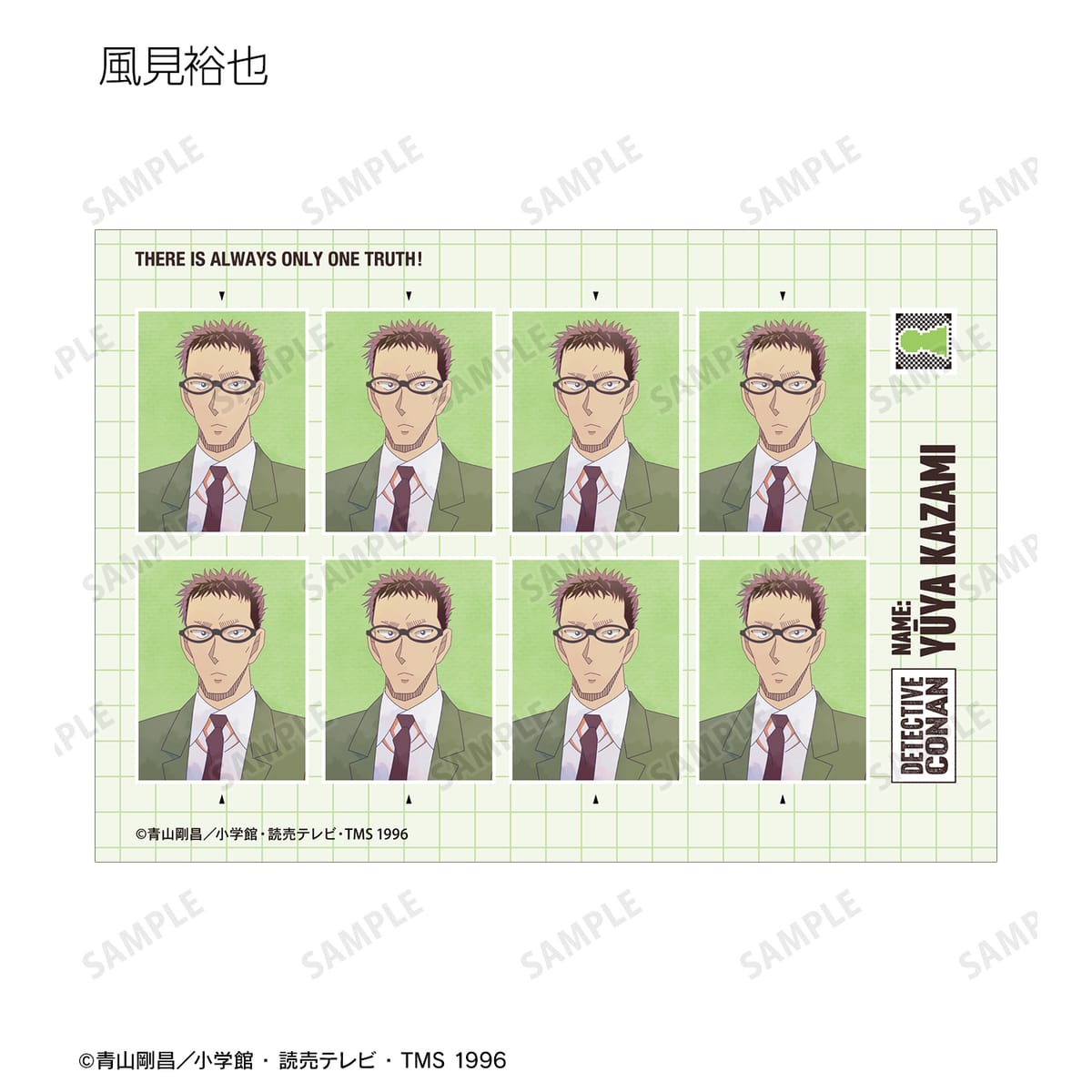 江戸川コナン、毛利蘭、毛利小五郎、灰原哀、大和敢助、上原由衣、諸伏高明、安室透、風見裕也のイラストを新たなタッチで魅力的に表現し、証明写真風のブロマイドに仕上げました。