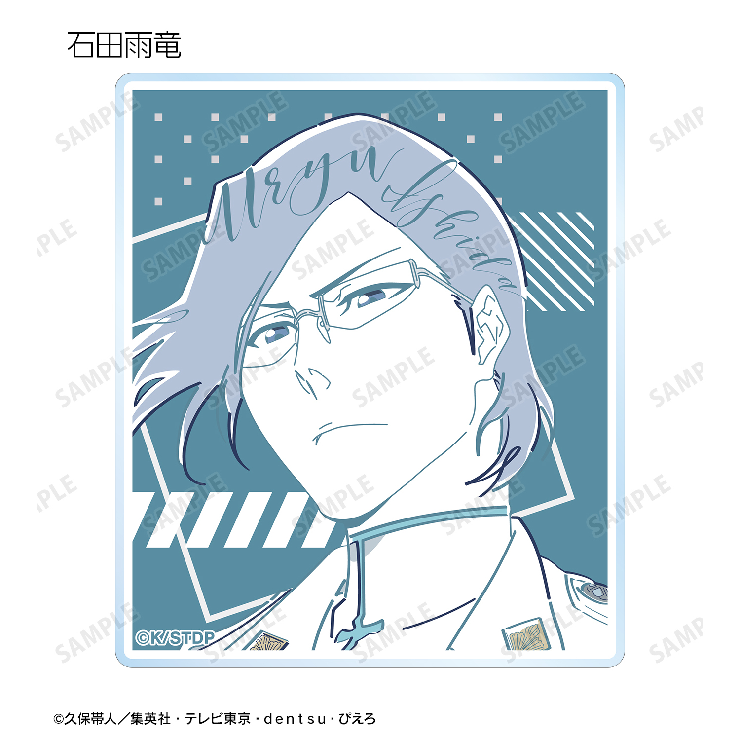 黒崎一護、浦原喜助、平子真子、朽木白哉、阿散井恋次、日番谷冬獅郎、朽木ルキア、石田雨竜、グリムジョー・ジャガージャックのイラストを文字と混ぜ合わせて新たに描き起こし、アクリルカードに仕上げました。