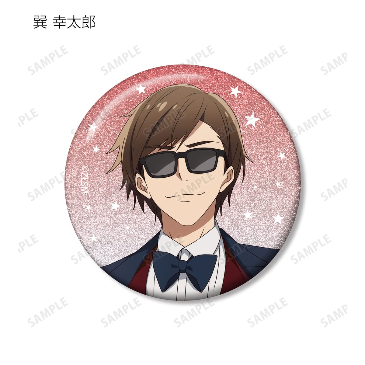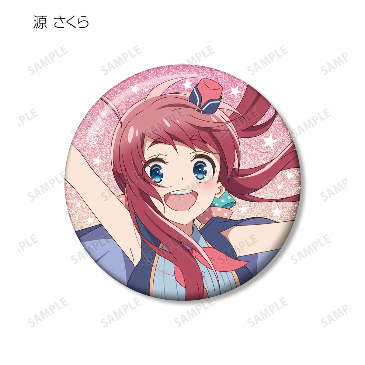 源 さくら、二階堂 サキ、水野 愛、紺野 純子、ゆうぎり、星川 リリィ、山田 たえ、巽 幸太郎、ロメロのイラストにグリッター加工を施した缶バッジに仕上げました。