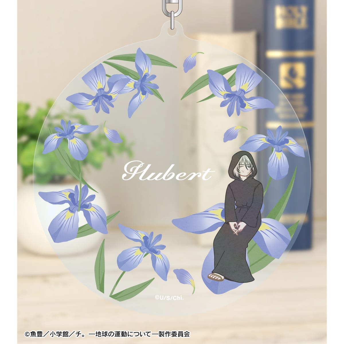 フベルトのイラストをボタニカルデザインに落とし込んで繊細なタッチで新たに描き起こし、BIGなアクリルキーホルダーに仕上げました。