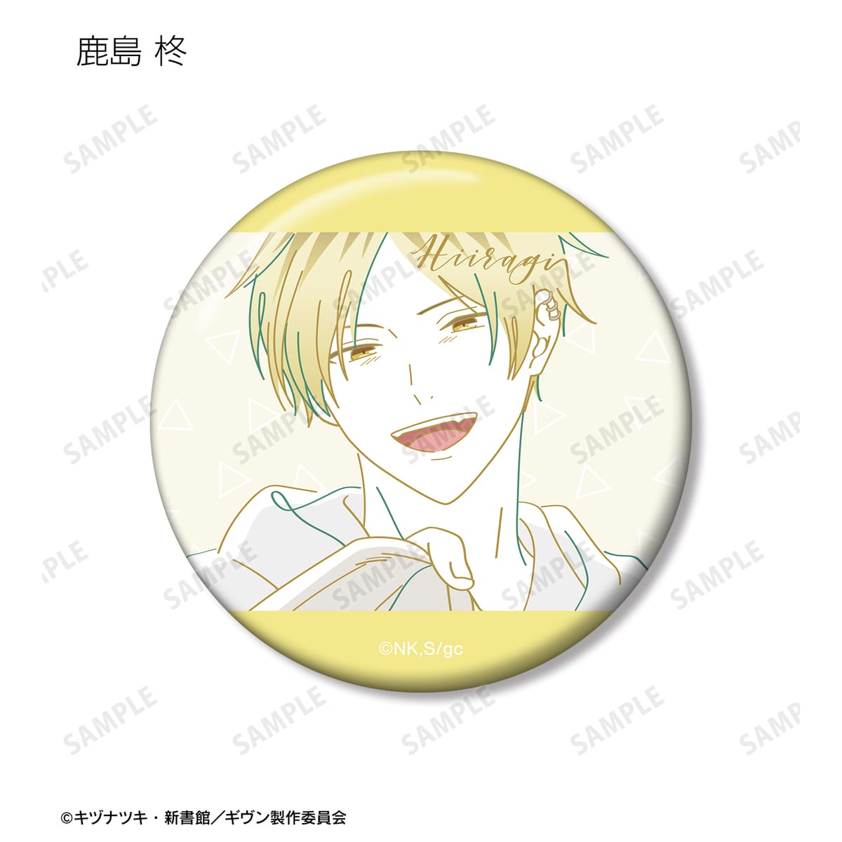 佐藤 真冬、上ノ山 立夏、中山 春樹、梶 秋彦、鹿島 柊、八木 玄純、村田 雨月のイラストを文字と混ぜ合わせ、新たに描き起こし、缶バッジに仕上げました。
