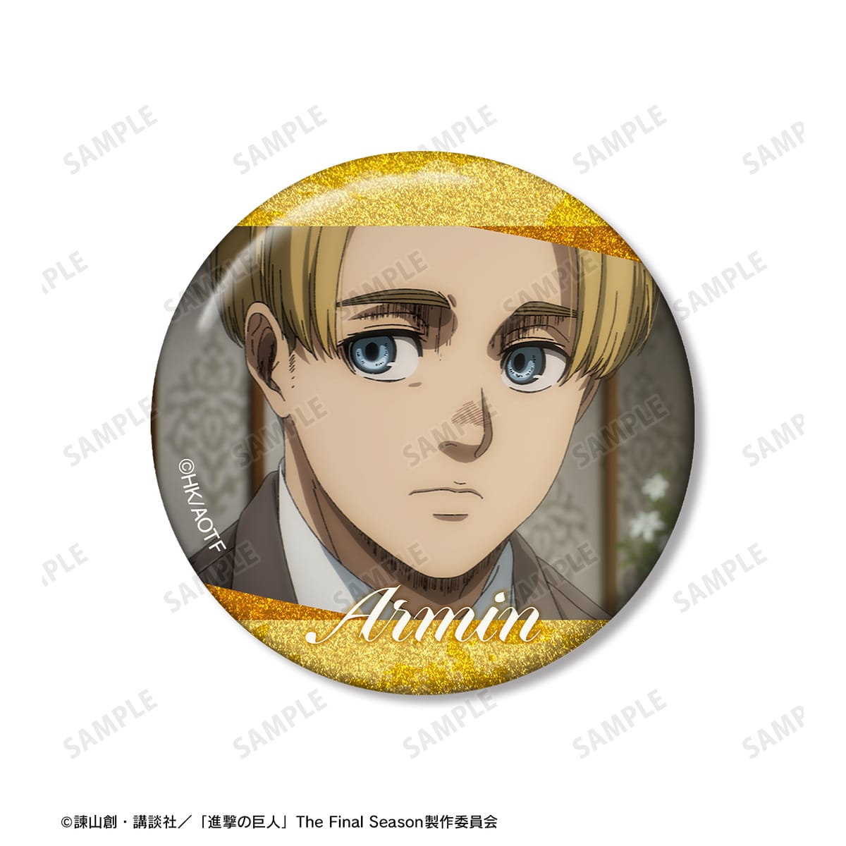 アルミンの印象的なシーンをグリッター加工を施した缶バッジ3個セットに仕上げました。