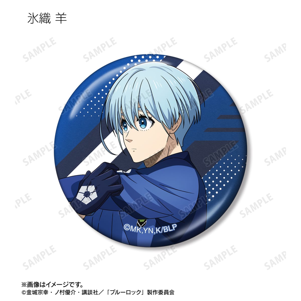 潔 世一、糸師 凛、凪 誠士郎、雪宮 剣優、乙夜 影汰、烏 旅人、蜂楽 廻、千切 豹馬、御影 玲王、氷織 羊の描き下ろしイラストをメタリック仕様の缶バッジに仕上げました。