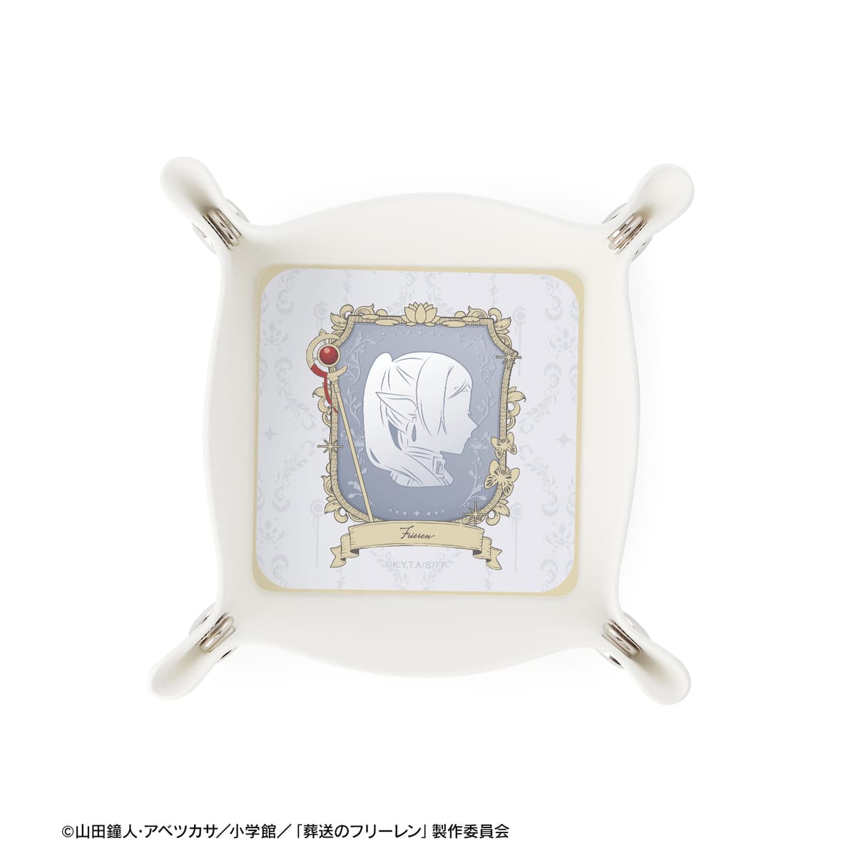 フリーレンのシルエット、フリーレンの杖をカメオ風のデザインのPUレザーマルチトレーに仕上げました。
