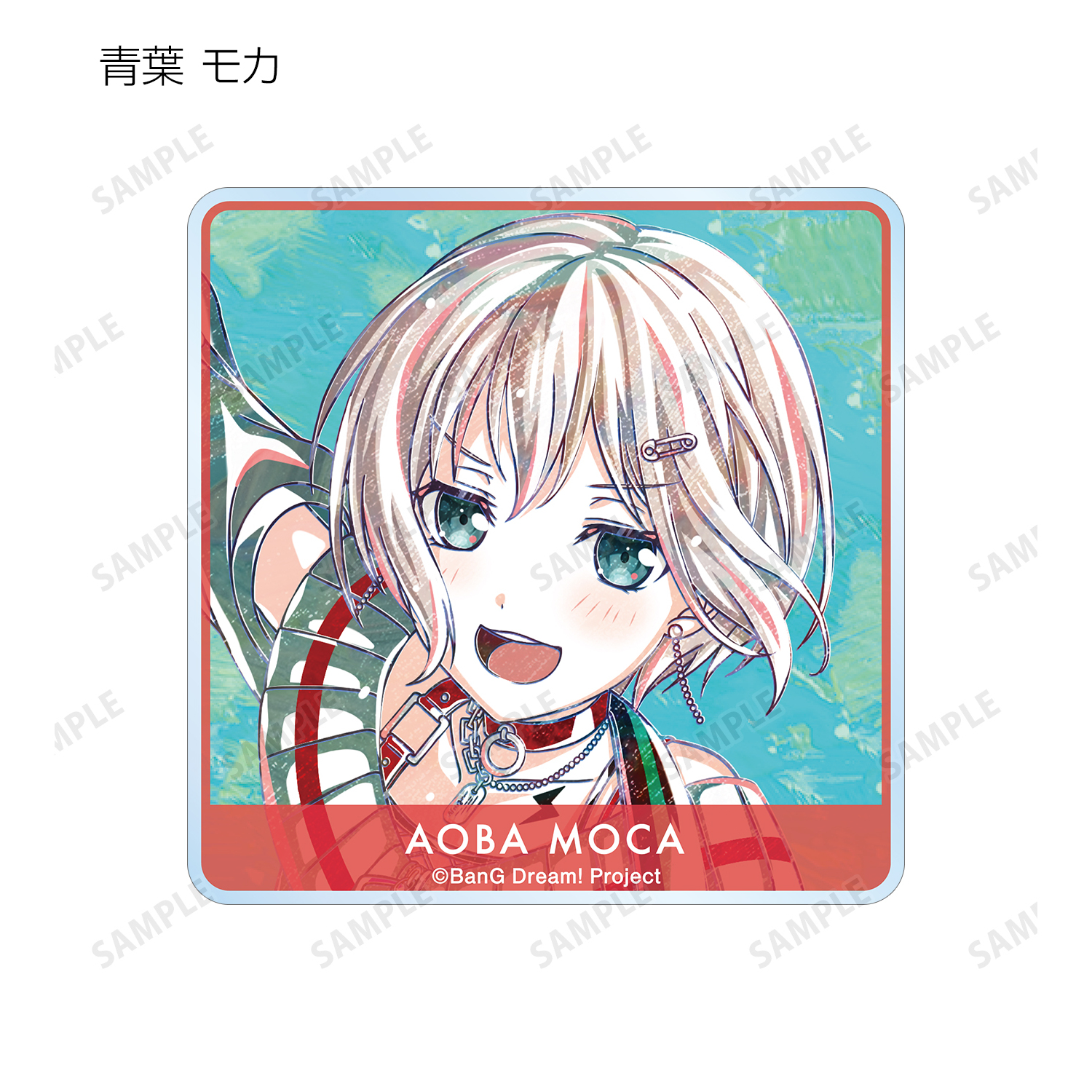 美竹 蘭、青葉 モカ、上原 ひまり、宇田川 巴、羽沢 つぐみ、レイヤ、ロック、マスキング、パレオ、チュチュのイラストを新たなタッチで魅力的に表現し、アクリルコースターに仕上げました。
