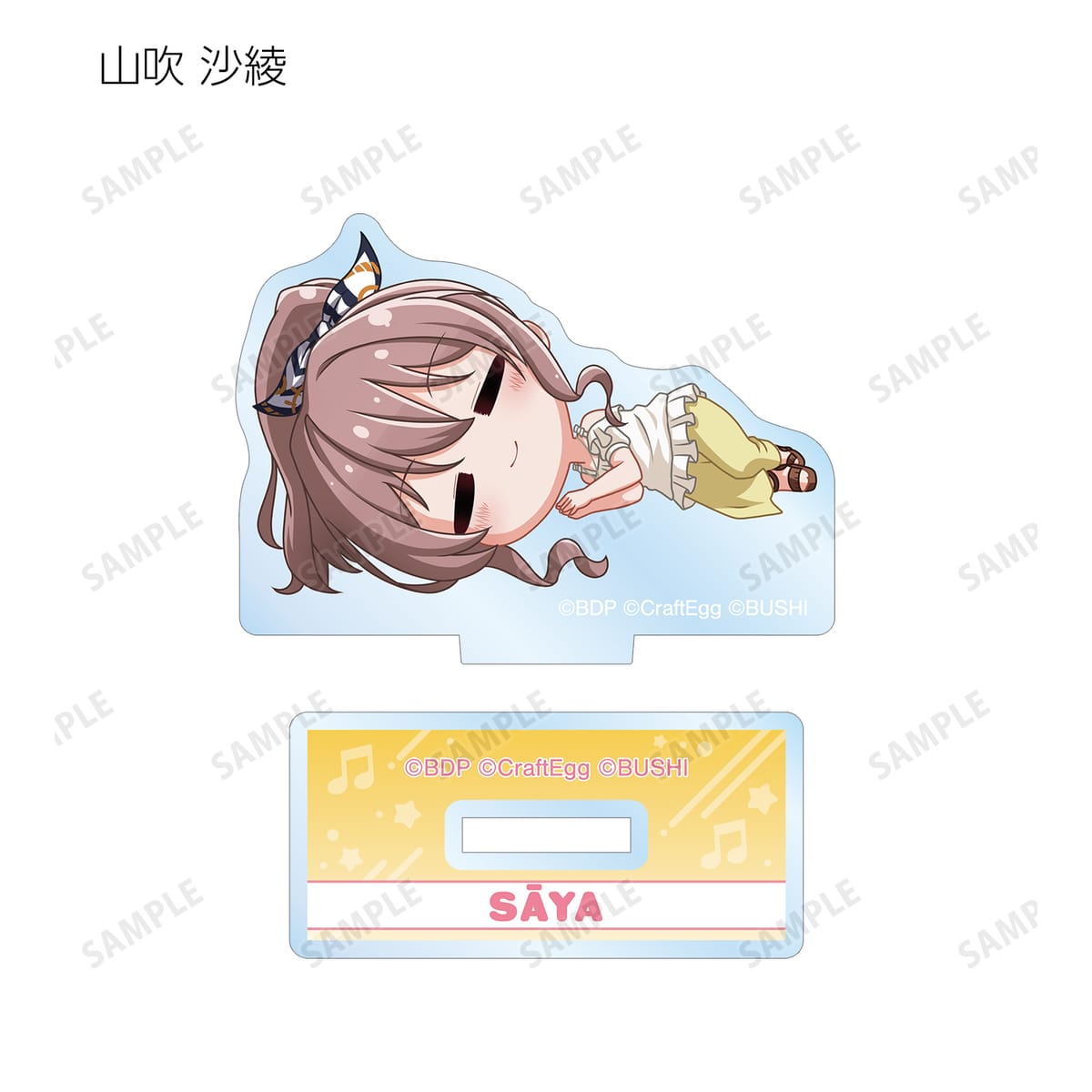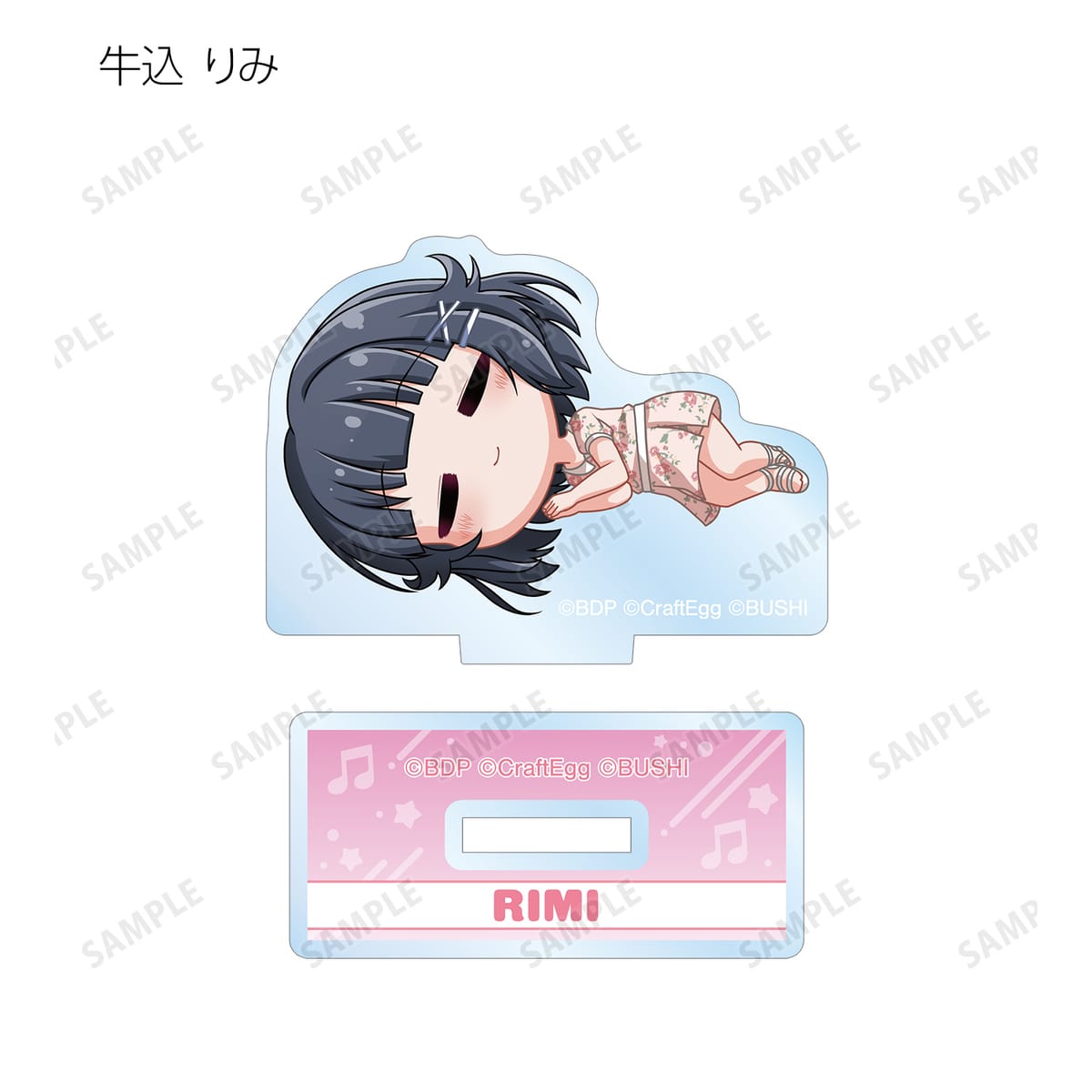 戸山 香澄、花園 たえ、牛込 りみ、山吹 沙綾、市ヶ谷 有咲、美竹 蘭、青葉 モカ、上原 ひまり、宇田川 巴、羽沢 つぐみがころんと寝ているちびキャラを新たに描き起こし、アクリルスタンドに仕上げました。