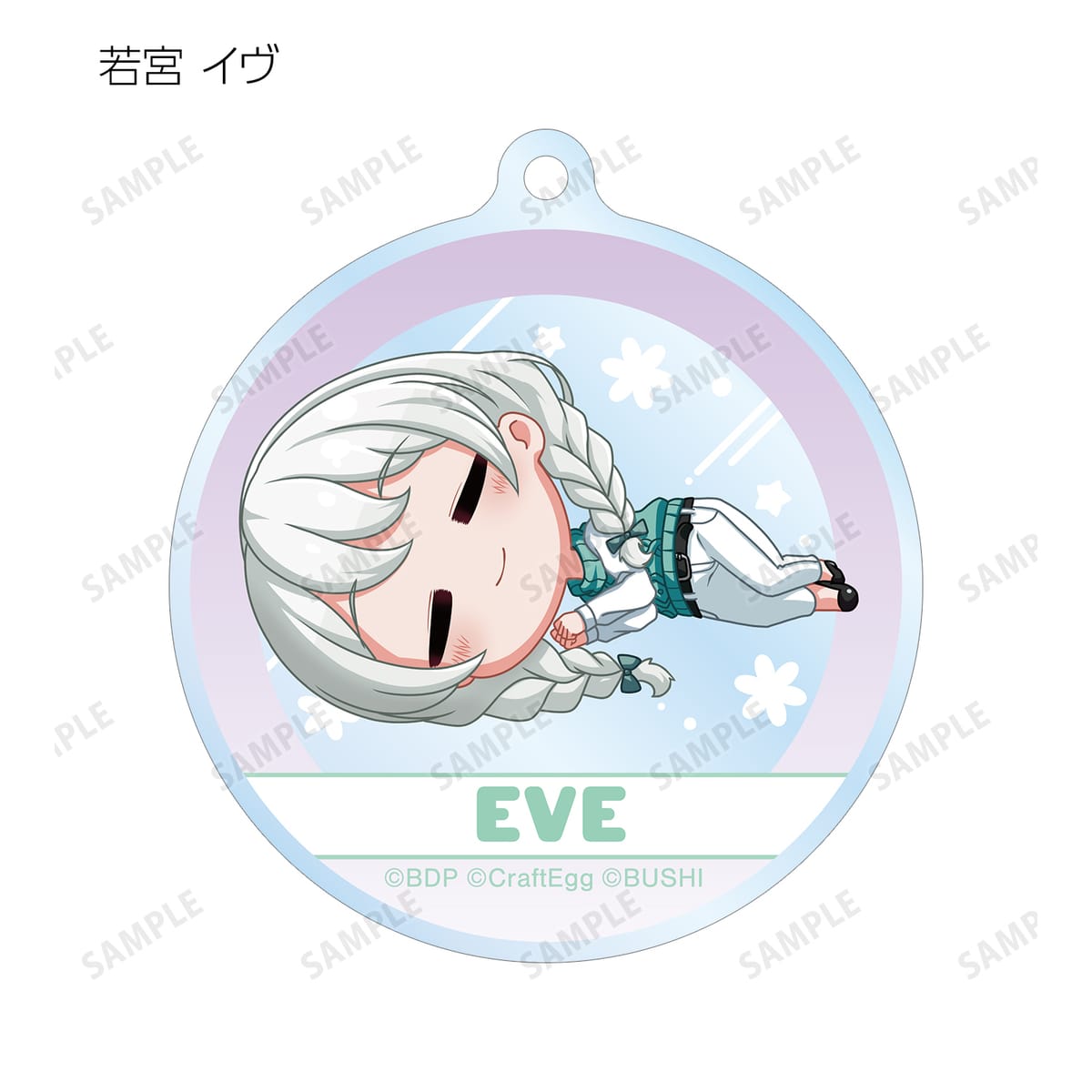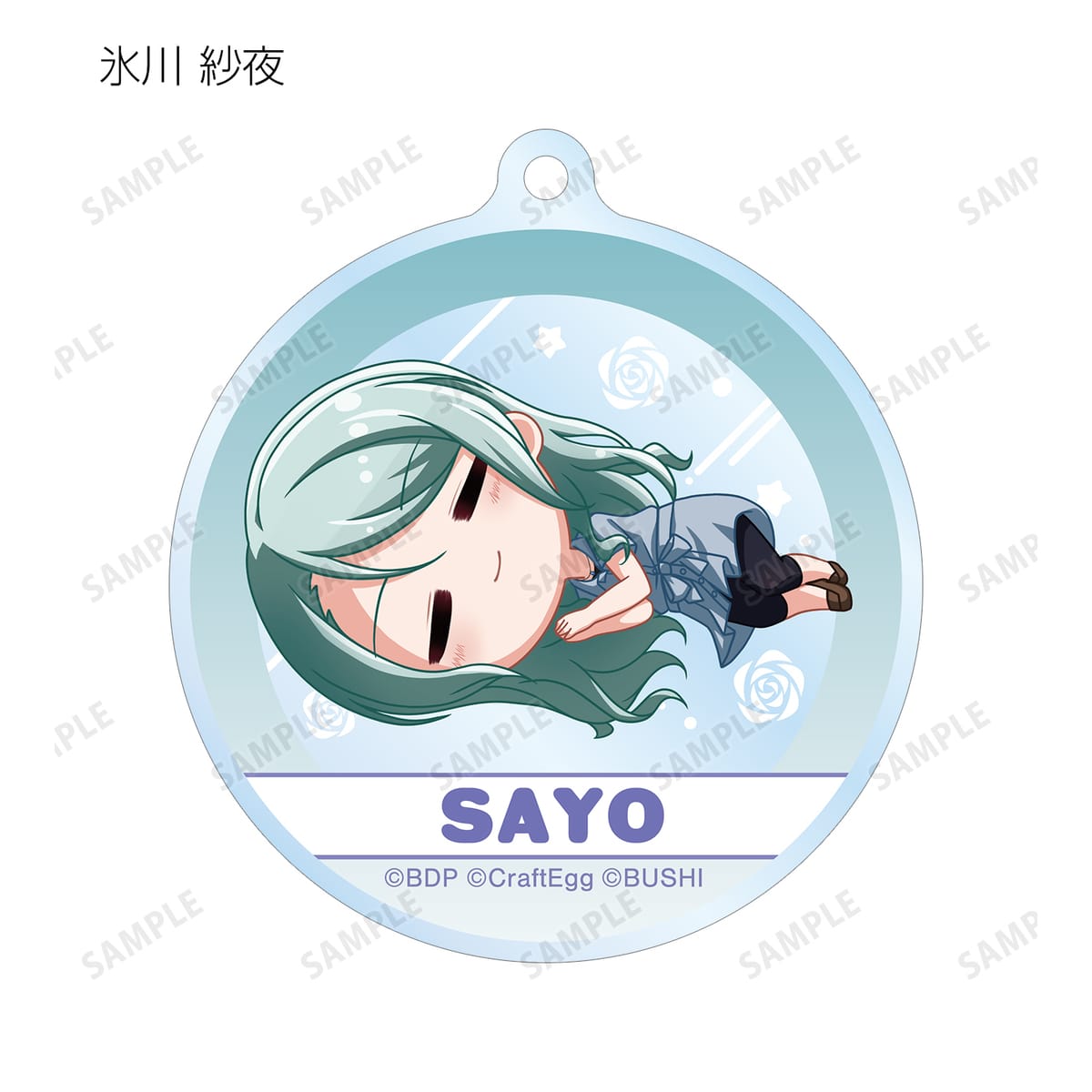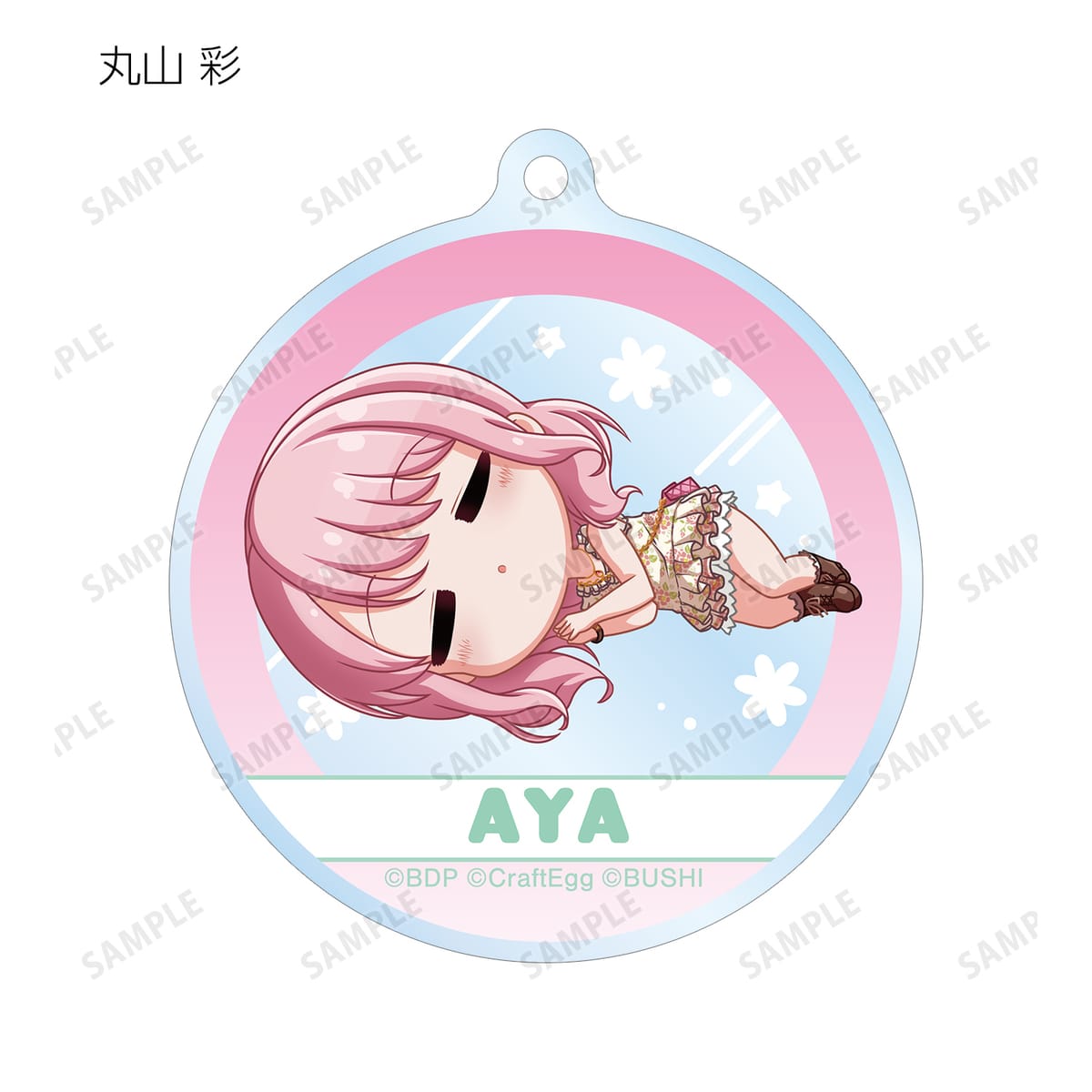 丸山 彩、氷川 日菜、白鷺 千聖、大和 麻弥、若宮 イヴ、湊 友希那、氷川 紗夜、今井 リサ、宇田川 あこ、白金 燐子がころんと寝ているちびキャラを新たに描き起こし、アクリルキーホルダーに仕上げました。
