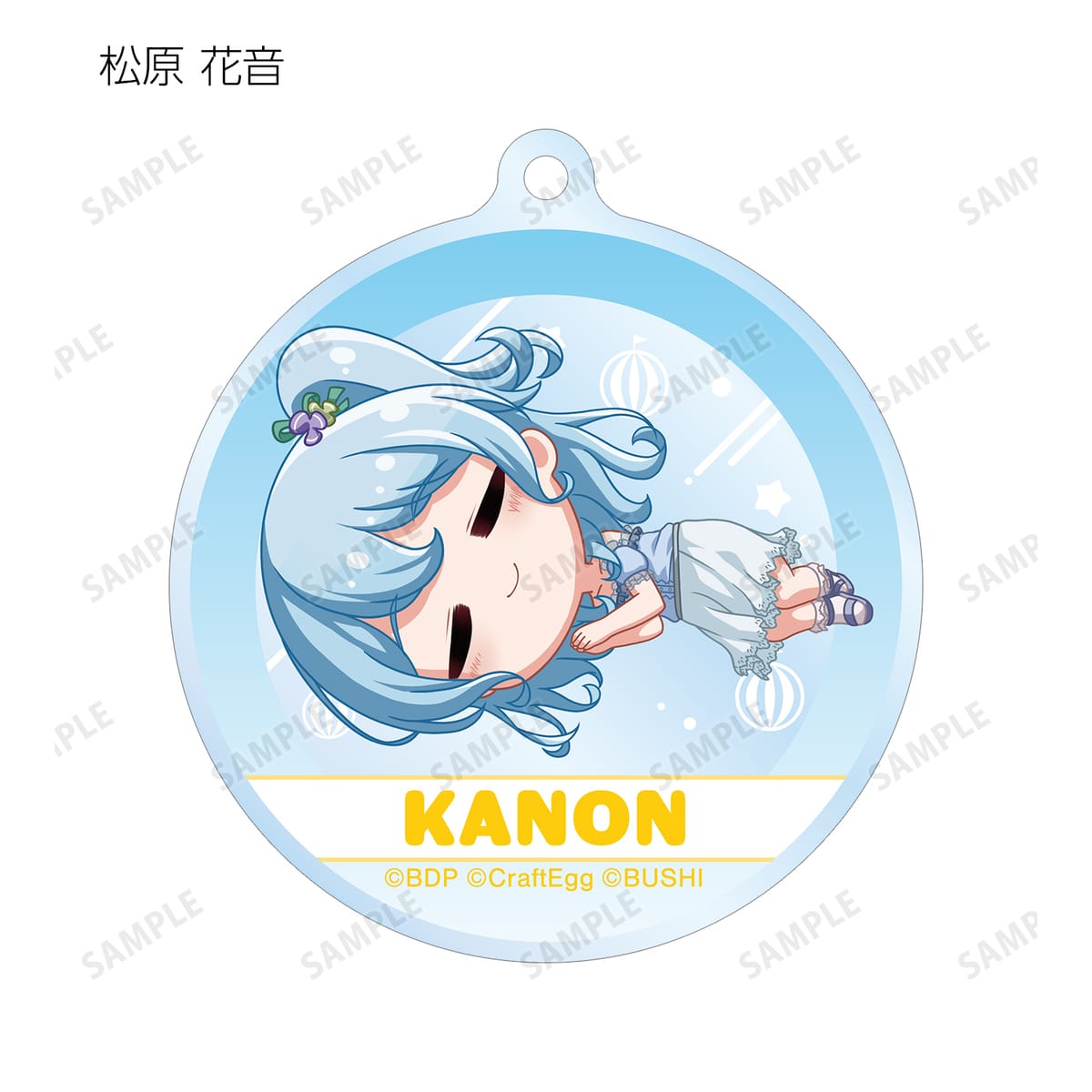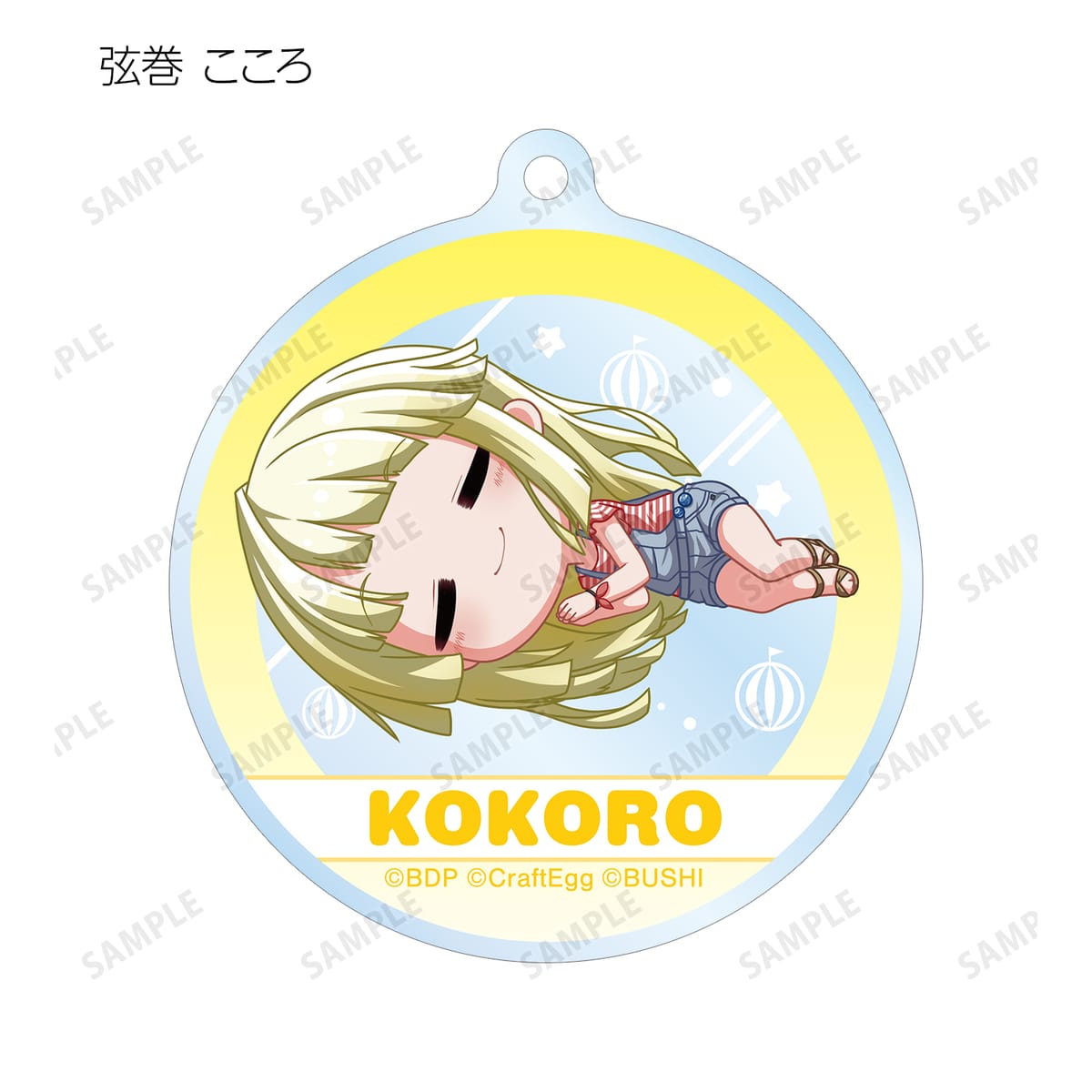 弦巻 こころ、瀬田 薫、北沢 はぐみ、松原 花音、奥沢 美咲、倉田 ましろ、桐ヶ谷 透子、広町 七深、二葉 つくし、八潮 瑠唯、レイヤ、ロック、マスキング、パレオ、チュチュがころんと寝ているちびキャラを新たに描き起こし、アクリルキーホルダーに仕上げました。
