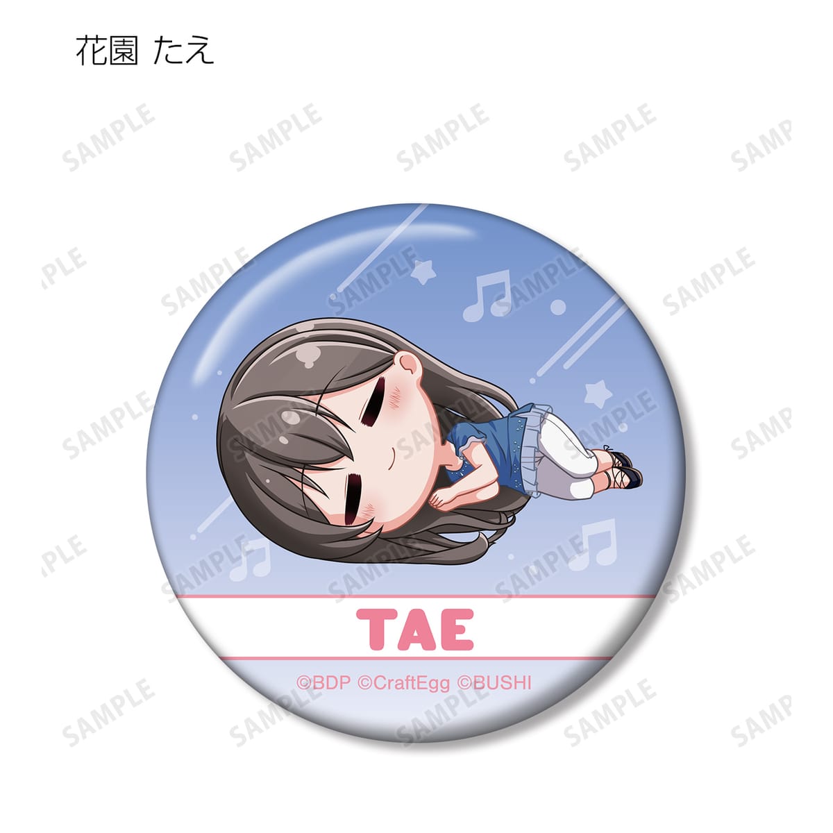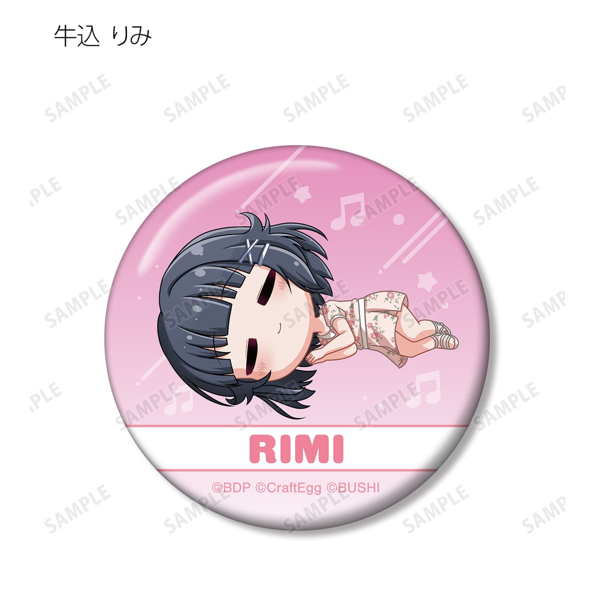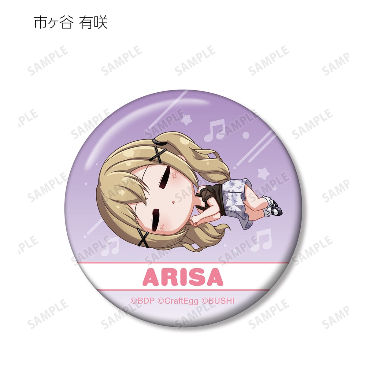 戸山 香澄、花園 たえ、牛込 りみ、山吹 沙綾、市ヶ谷 有咲、美竹 蘭、青葉 モカ、上原 ひまり、宇田川 巴、羽沢 つぐみがころんと寝ているちびキャラを新たに描き起こし、缶バッジに仕上げました。