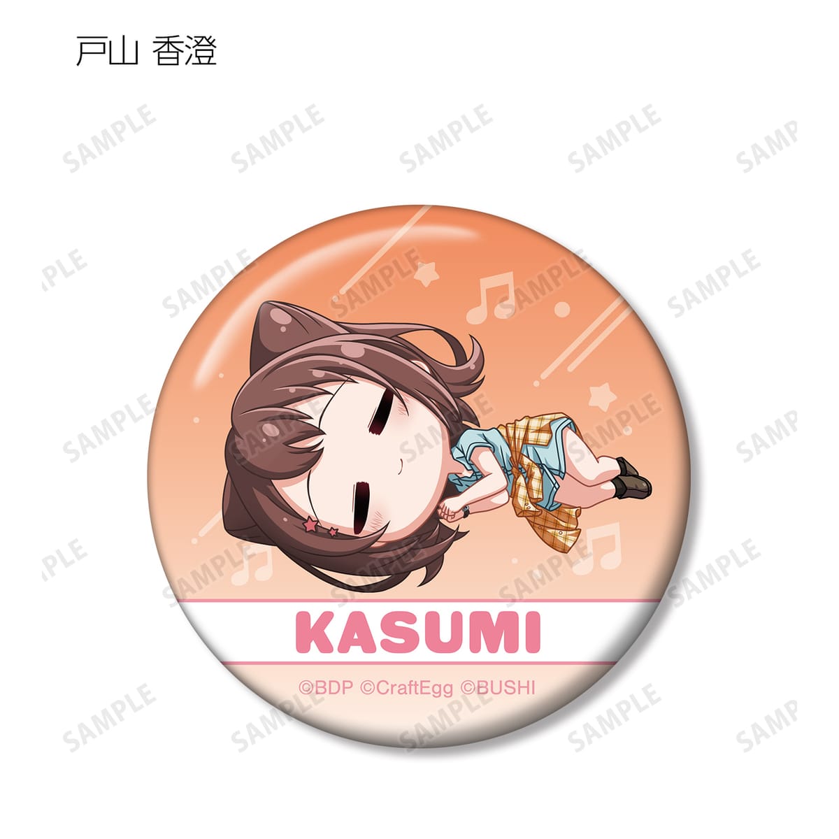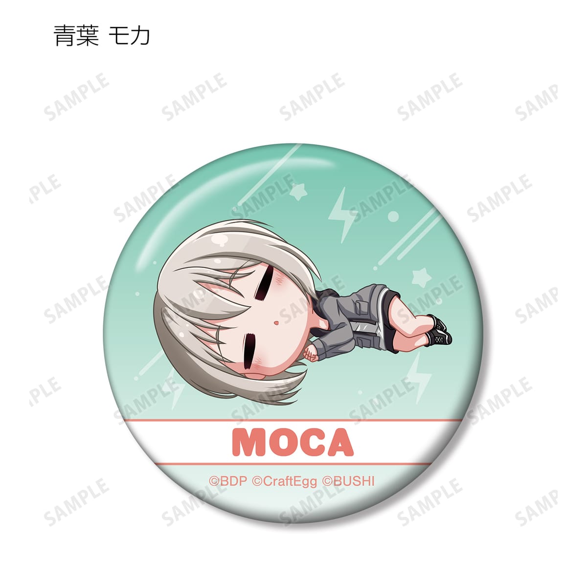 戸山 香澄、花園 たえ、牛込 りみ、山吹 沙綾、市ヶ谷 有咲、美竹 蘭、青葉 モカ、上原 ひまり、宇田川 巴、羽沢 つぐみがころんと寝ているちびキャラを新たに描き起こし、缶バッジに仕上げました。