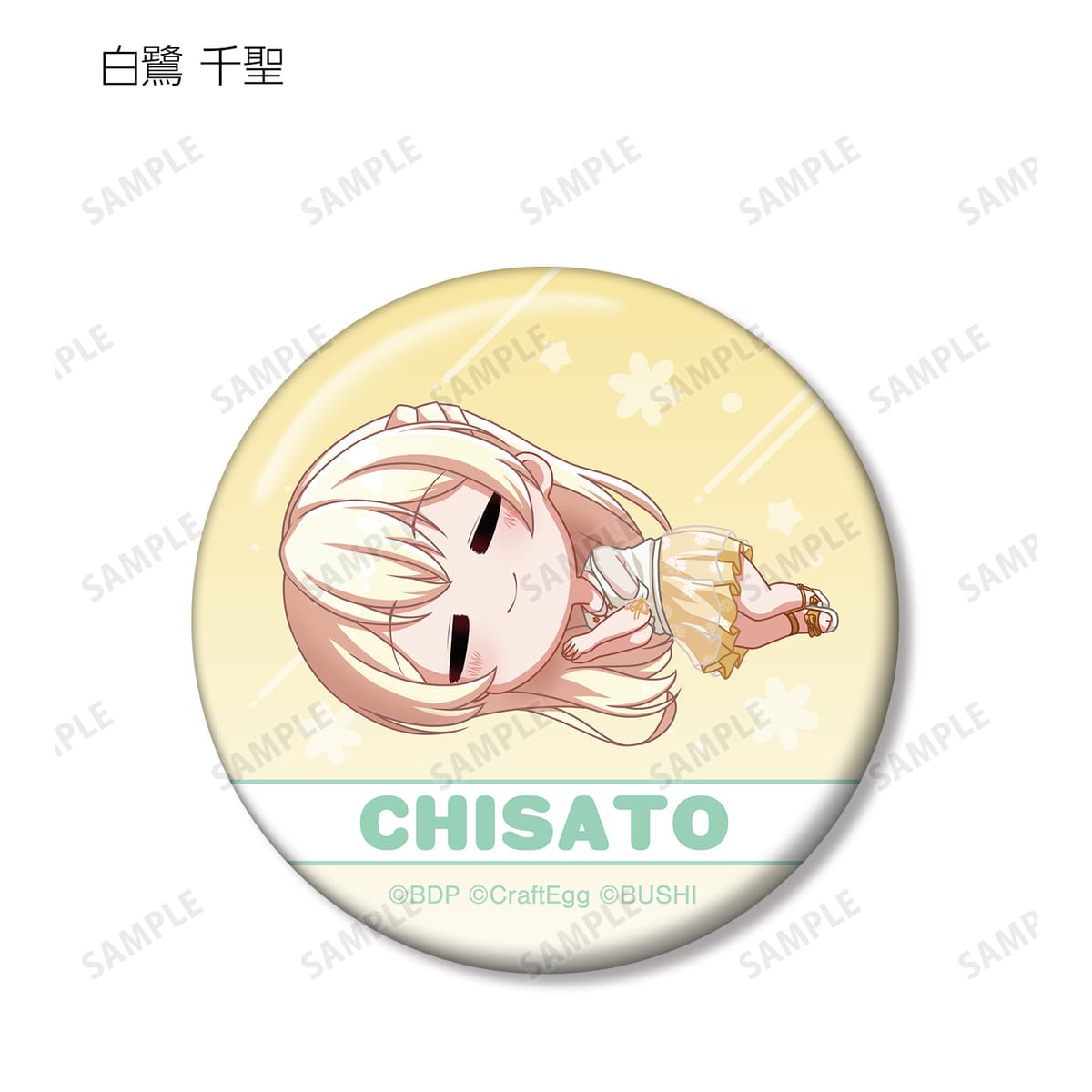 丸山 彩、氷川 日菜、白鷺 千聖、大和 麻弥、若宮 イヴ、湊 友希那、氷川 紗夜、今井 リサ、宇田川 あこ、白金 燐子がころんと寝ているちびキャラを新たに描き起こし、缶バッジに仕上げました。