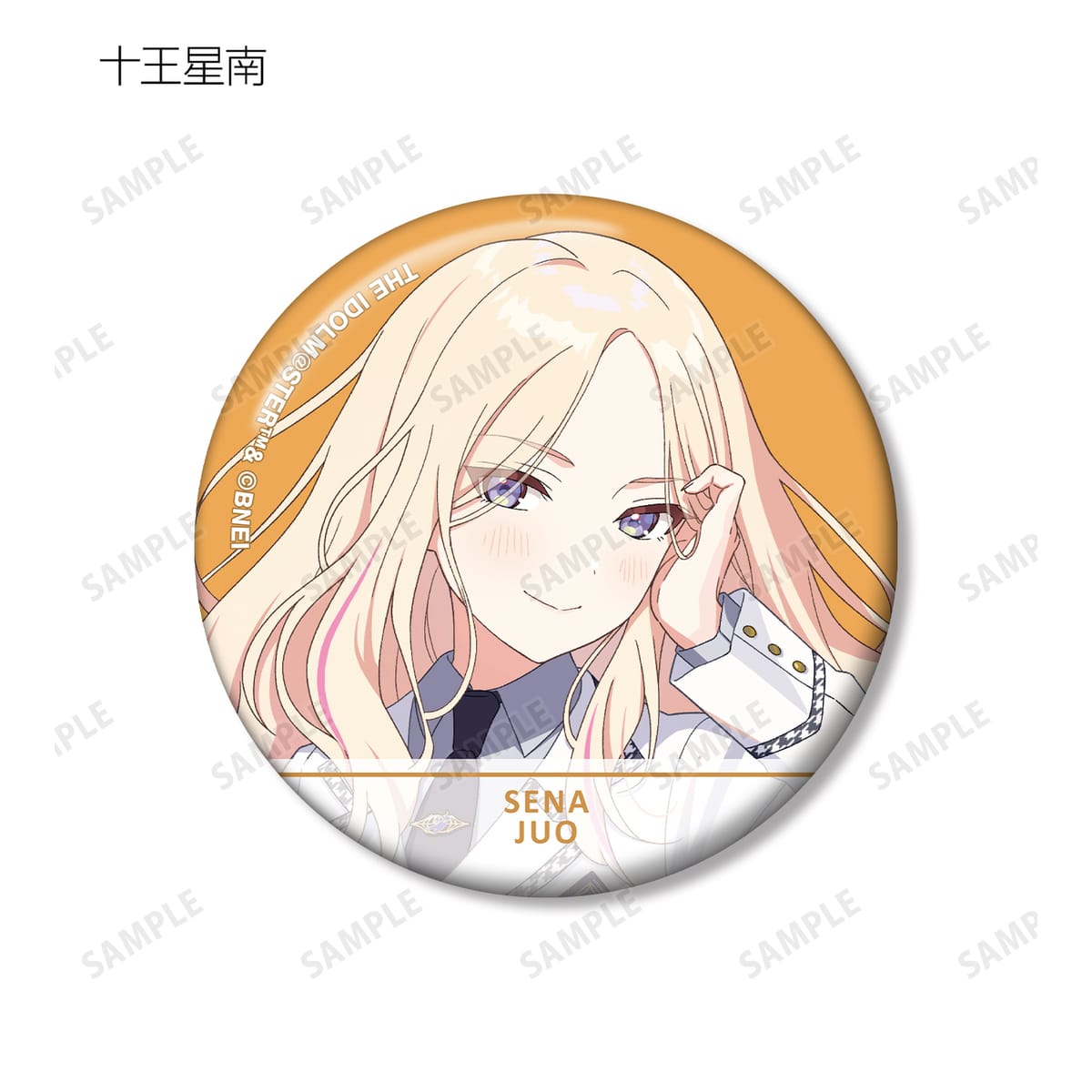 花海咲季、月村手毬、藤田ことね、有村麻央、葛城リーリヤ、倉本千奈、紫雲清夏、篠澤 広、花海佑芽、姫崎莉波、秦谷美鈴、十王星南のイラストをアイドルカラーに合わせた缶バッジに仕上げました。