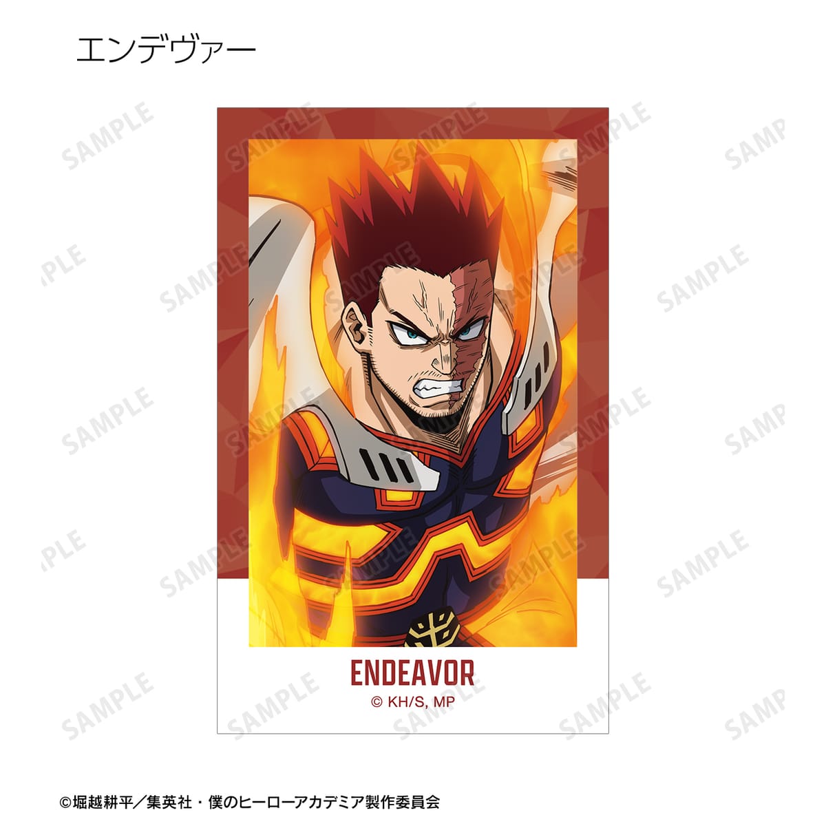 緑谷出久、爆豪勝己、麗日お茶子、轟焦凍、アーマード・オールマイト、相澤消太、エンデヴァー、ホークス、 死柄木弔、オール・フォー・ワン、荼毘、トガヒミコのビジュアルをビジュアルカードに仕上げました。