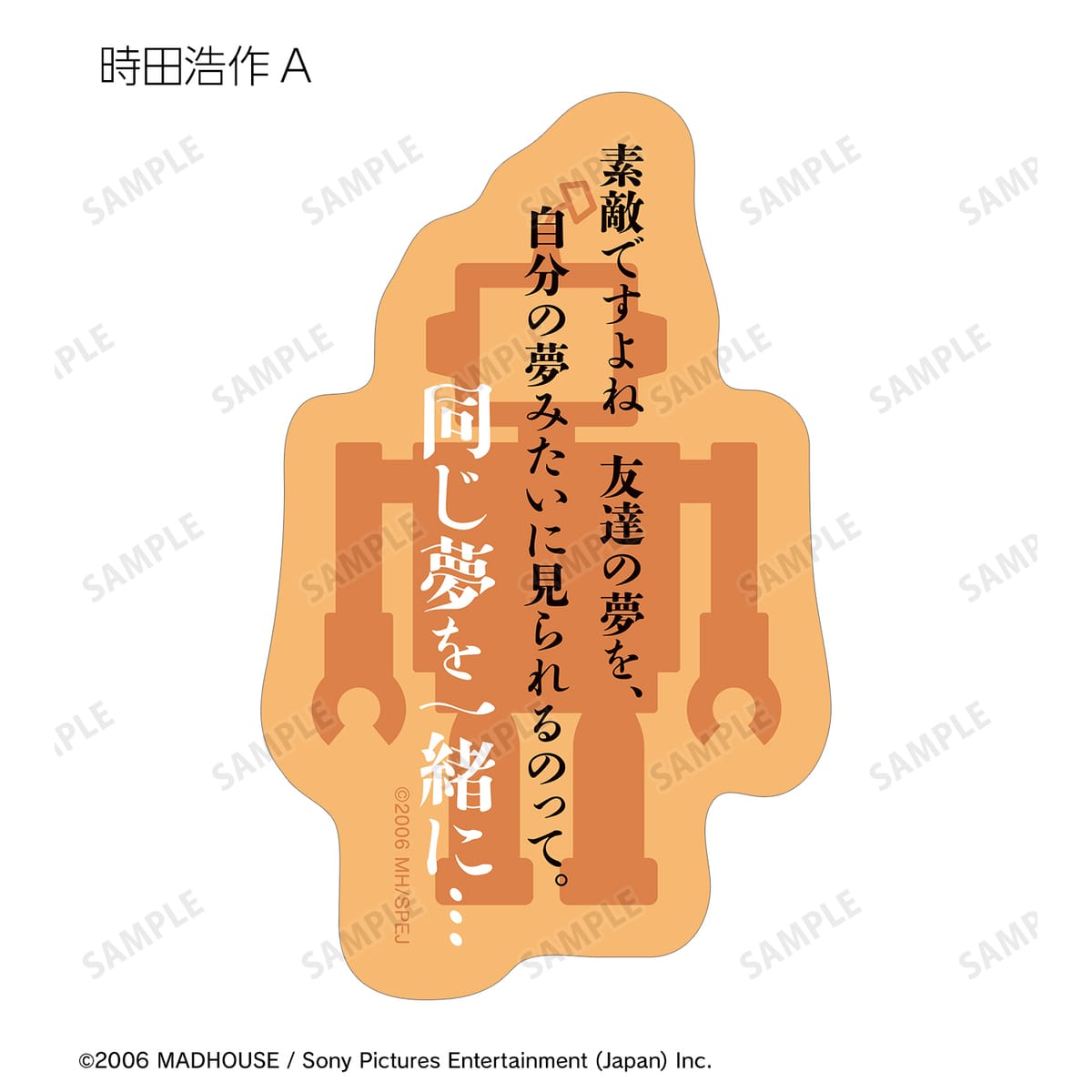千葉敦子、パプリカ、島寅太朗、時田浩作、粉川利美、乾精次郎、小山内守雄、氷室啓の描き起こしモチーフと印象的なセリフを、ステッカーに仕上げました。