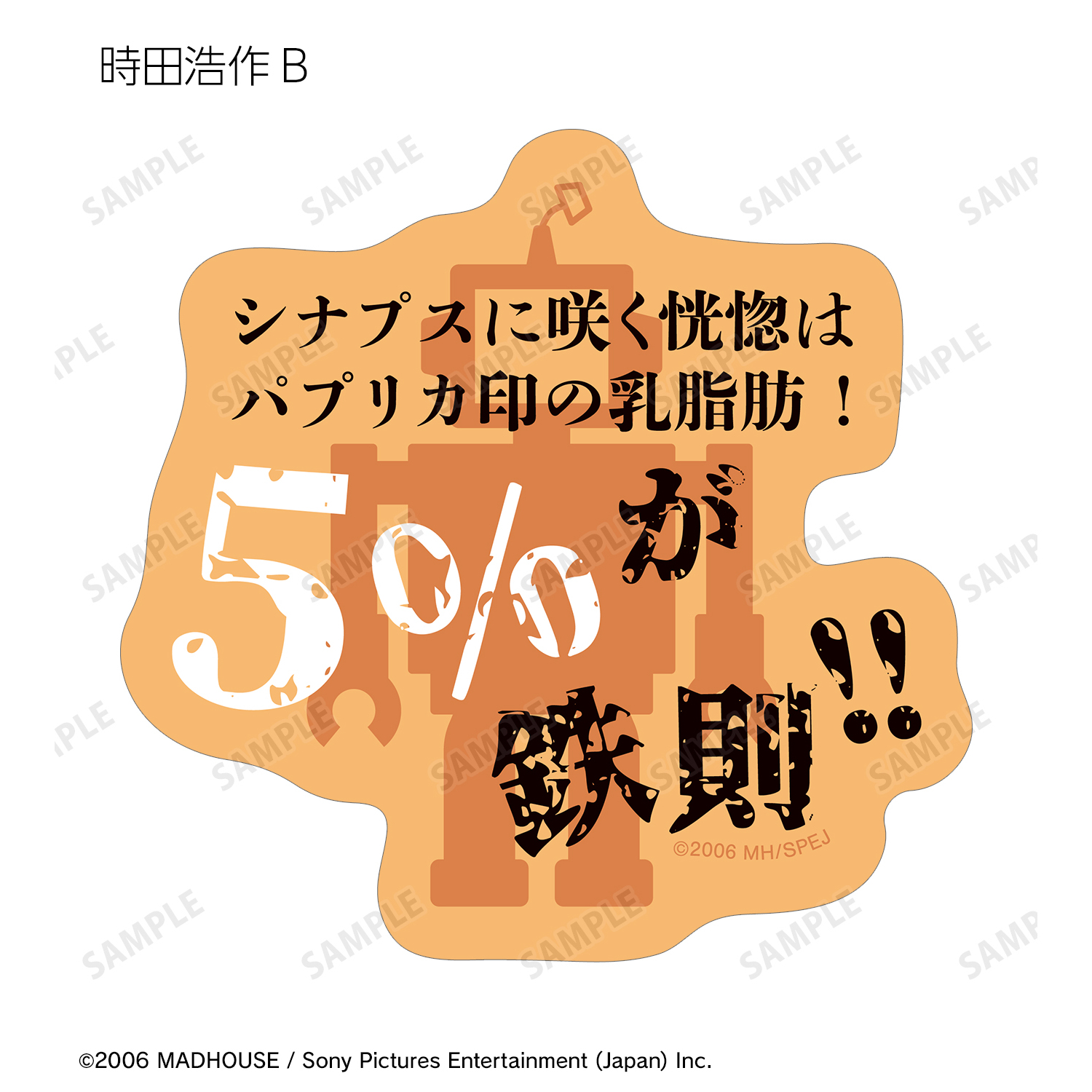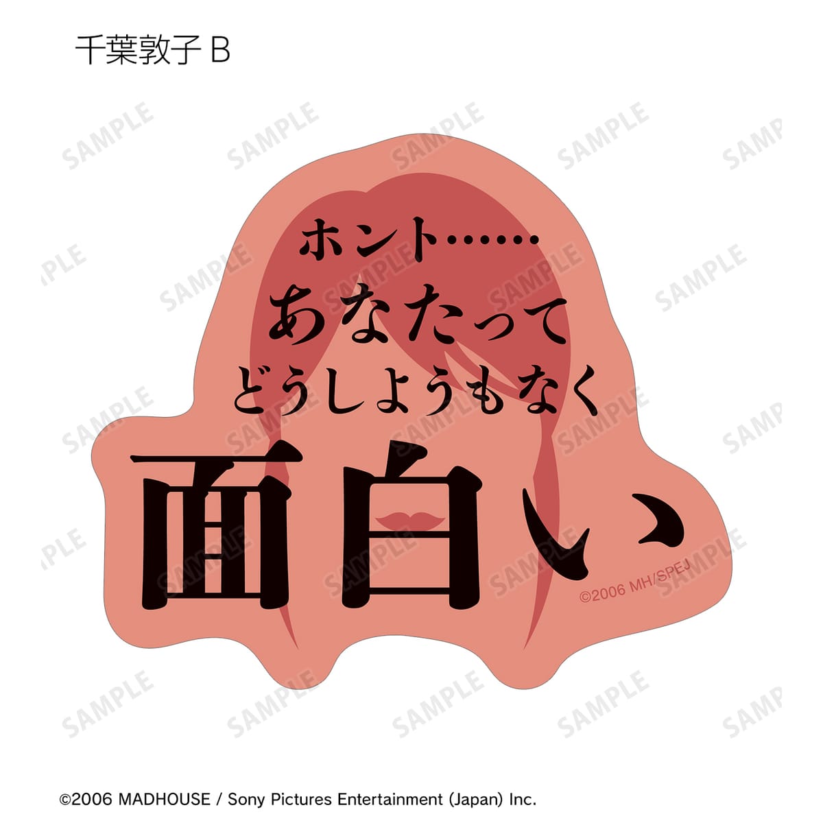 千葉敦子、パプリカ、島寅太朗、時田浩作、粉川利美、乾精次郎、小山内守雄、氷室啓の描き起こしモチーフと印象的なセリフを、ステッカーに仕上げました。
