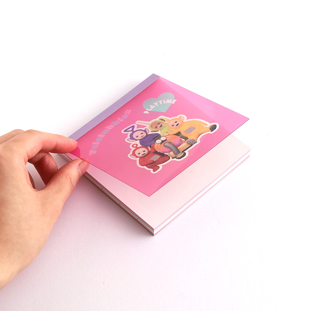1997年にBBCで放映された英国発の人気作品「テレタビーズ」。当時からのファンも最新のファンも楽しく手に取れるようなキュートな表情やアイコンを使用した第三弾の登場です。4種類の絵柄が楽しめる、スクエアタイプのメモパッドです。