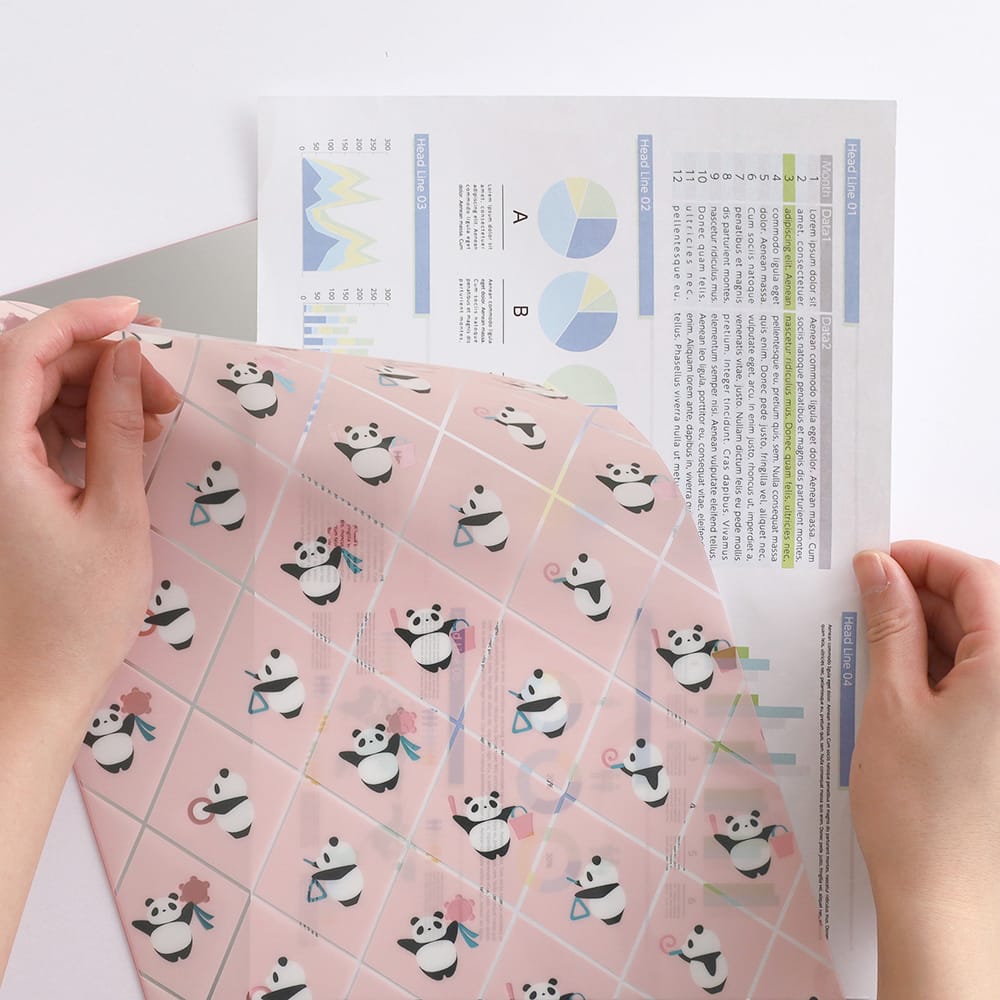 パンダコパンダの微笑ましいシーンやかわいらしい親子の様子をデザインしたシリーズ。絵柄の一部がキラリと輝いて見える仕掛けが楽しい、A4サイズのクリアファイルです。