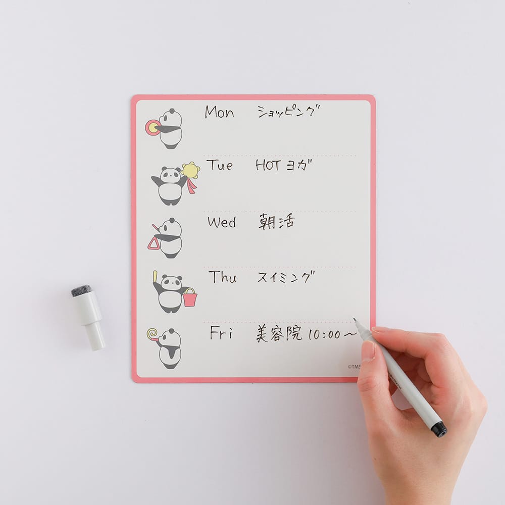 パンダコパンダの微笑ましいシーンやかわいらしい親子の様子をデザインしたシリーズ。冷蔵庫などに貼ることができるマグネットシートです。ホワイトボード用のペンを使えば繰り返し書くことができます。