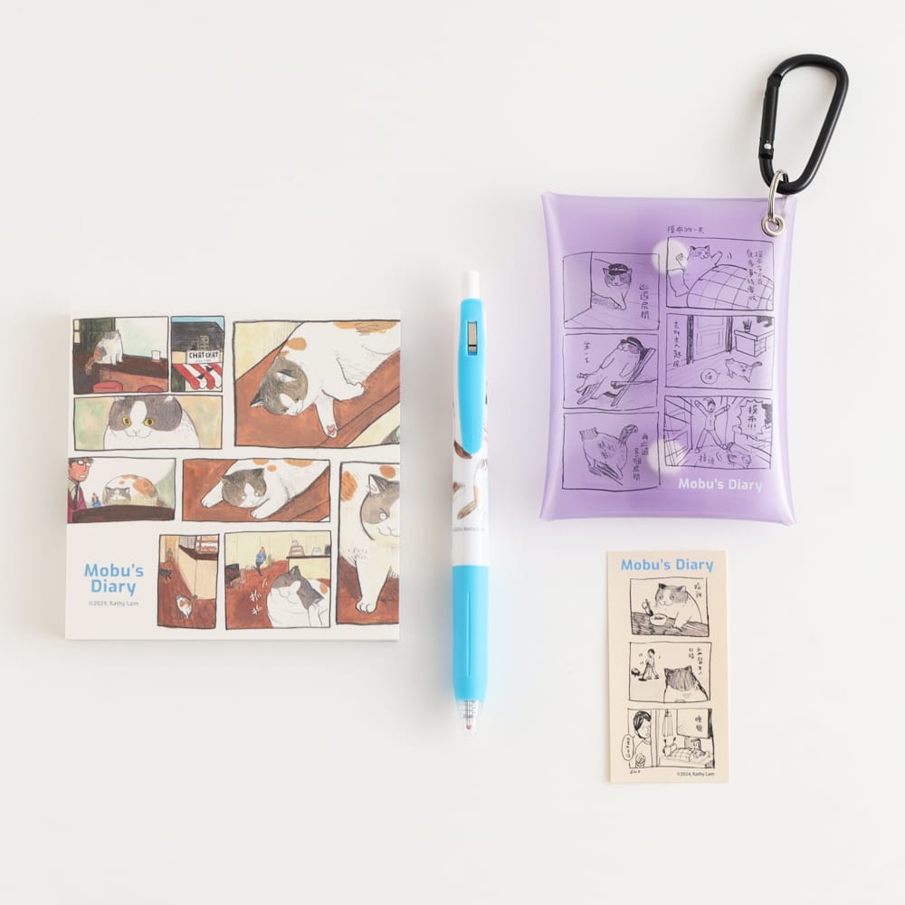 台湾で大人気のコミック作品集「三毛猫モブは猫缶を稼ぎたい」のギフト缶セット。ボールペン、PVCマルチケース、ステッカー、裏紙メモが入っています。