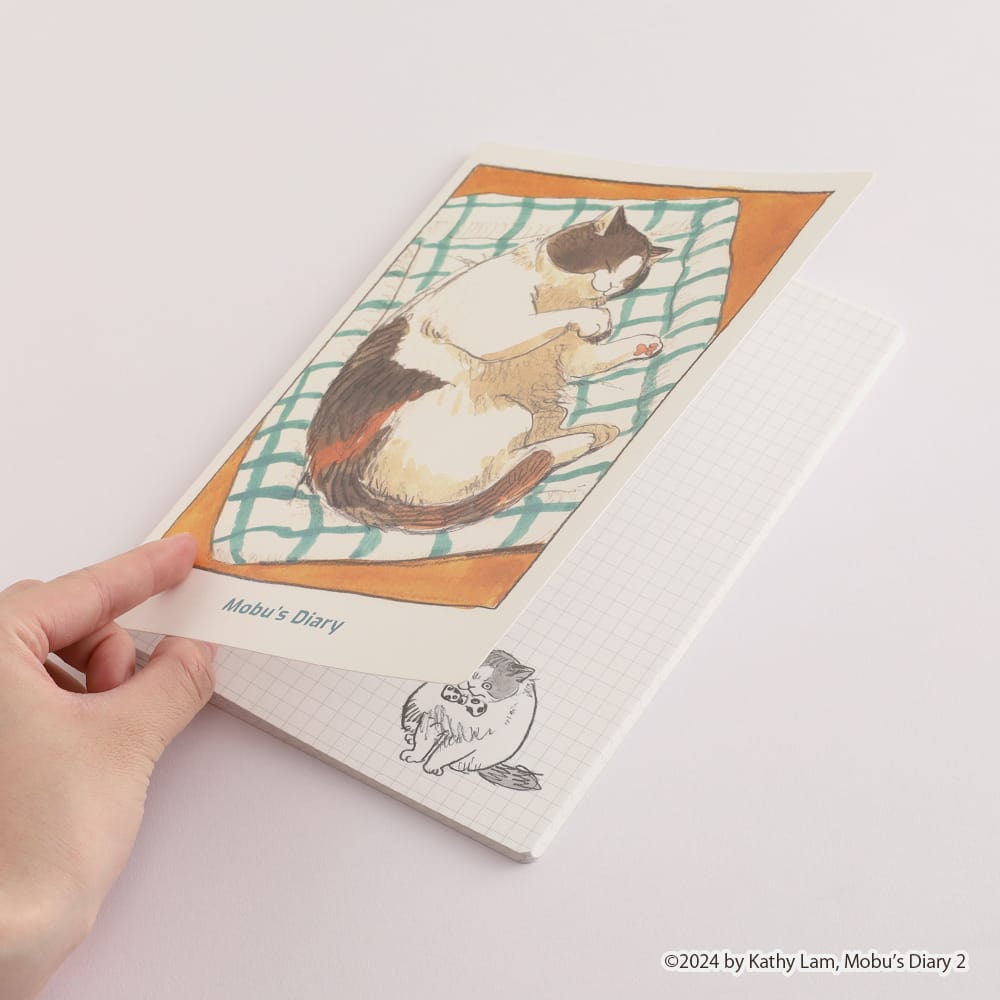 台湾で大人気のコミック作品集「三毛猫モブは猫缶を稼ぎたい」オリジナルデザインシリーズの第2弾が登場。表裏どちらのイラストも楽しめるA5サイズの綴じノートです。ノートの中柄も愛らしいモブのイラストがあしらわれています。