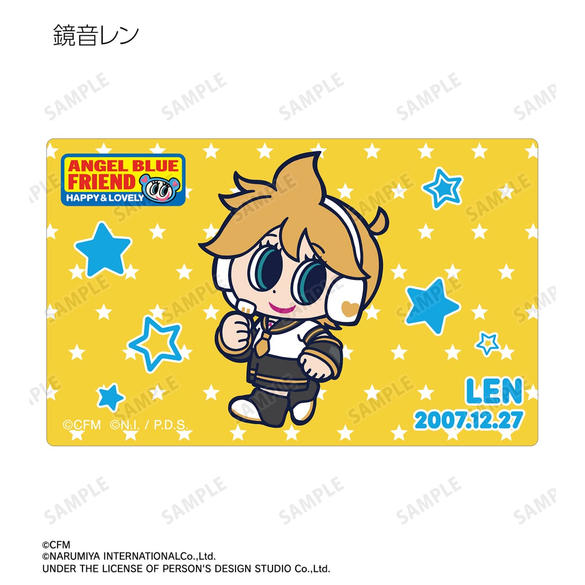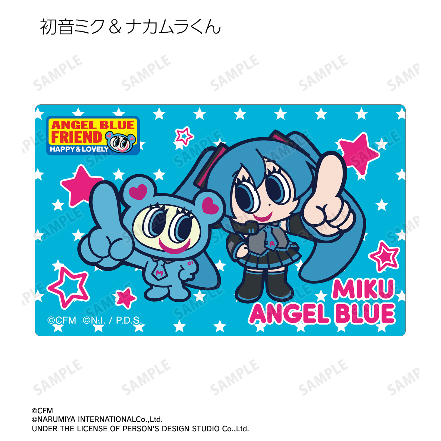 初音ミク、鏡音リン、鏡音レン、巡音ルカ、MEIKO、KAITO、ナカムラくんを描き起こしたANGEL BLUEのコラボイラストを、カードステッカーに仕上げました。