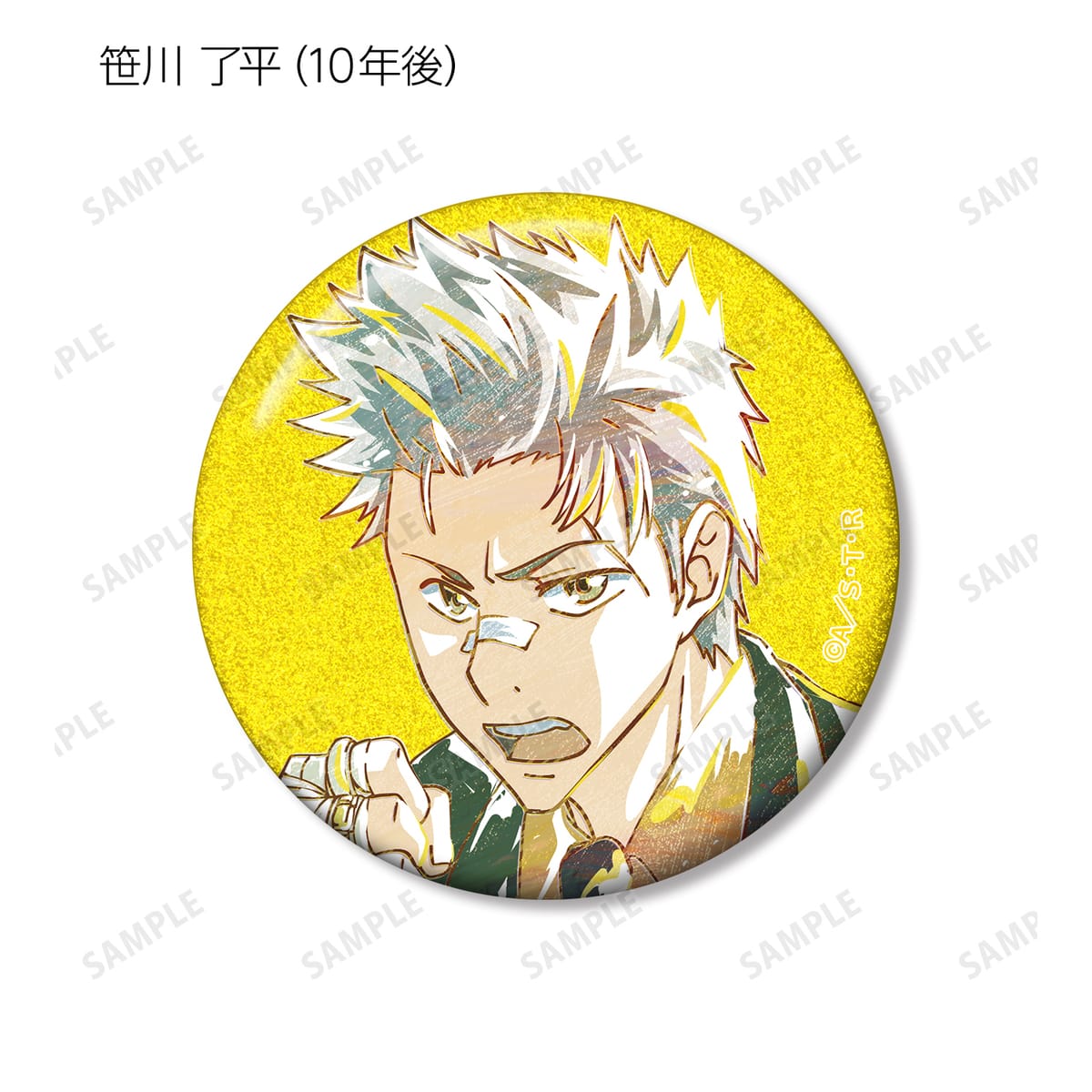 沢田 綱吉 、リボーン、獄寺 隼人(10年後)、山本 武(10年後)、雲雀 恭弥(10年後)、六道 骸(10年後)、笹川 了平(10年後)、大人ランボ、ディーノ(10年後)、XANXUS (10年後)、スペルビ・スクアーロ(10年後)、ベルフェゴール(10年後)、フランのイラストを新たなタッチで魅力的に表現し、グリッター加工を施した缶バッジに仕上げました。