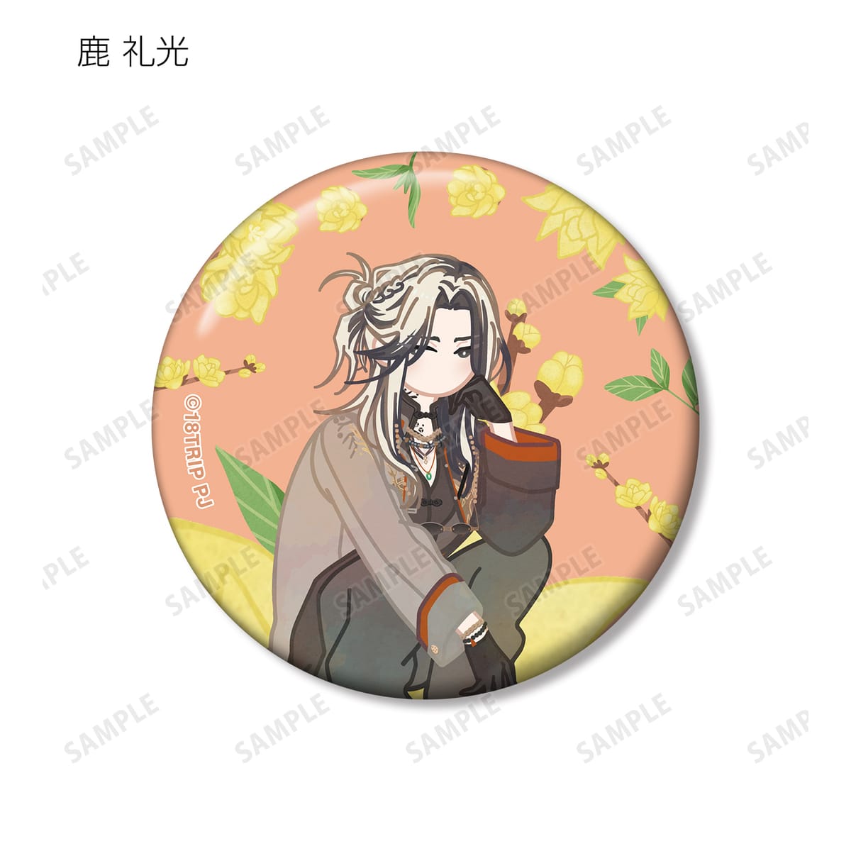 西園 練牙、大黒 可不可、叢雲 添、神名 雪風、鹿 礼光、五十竹 あく太、衣川 季肋、斜木 七基、輝矢 宗氏、久楽間 潮のイラストをボタニカルデザインに落とし込んで繊細なタッチで新たに描き起こし、缶バッジに仕上げました。