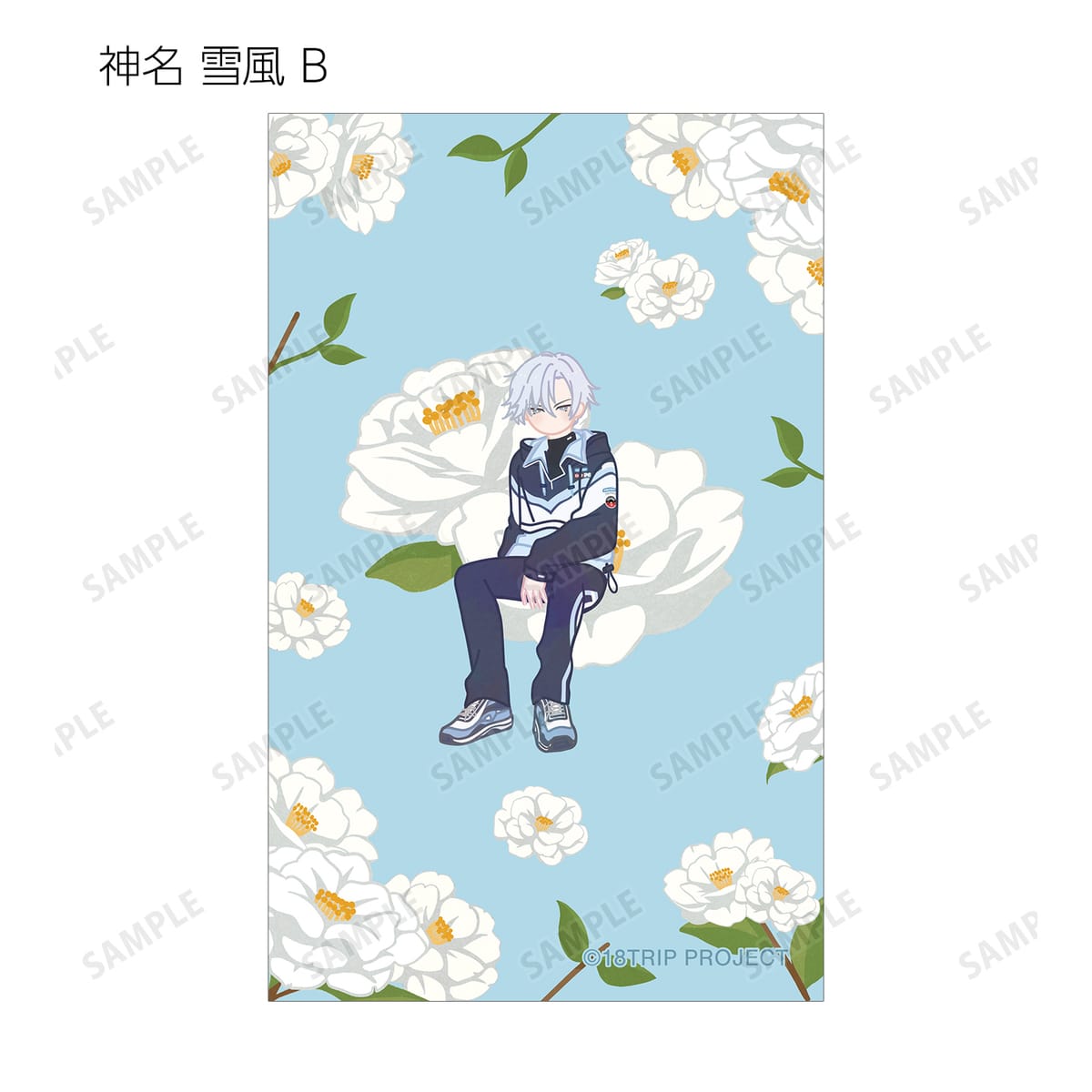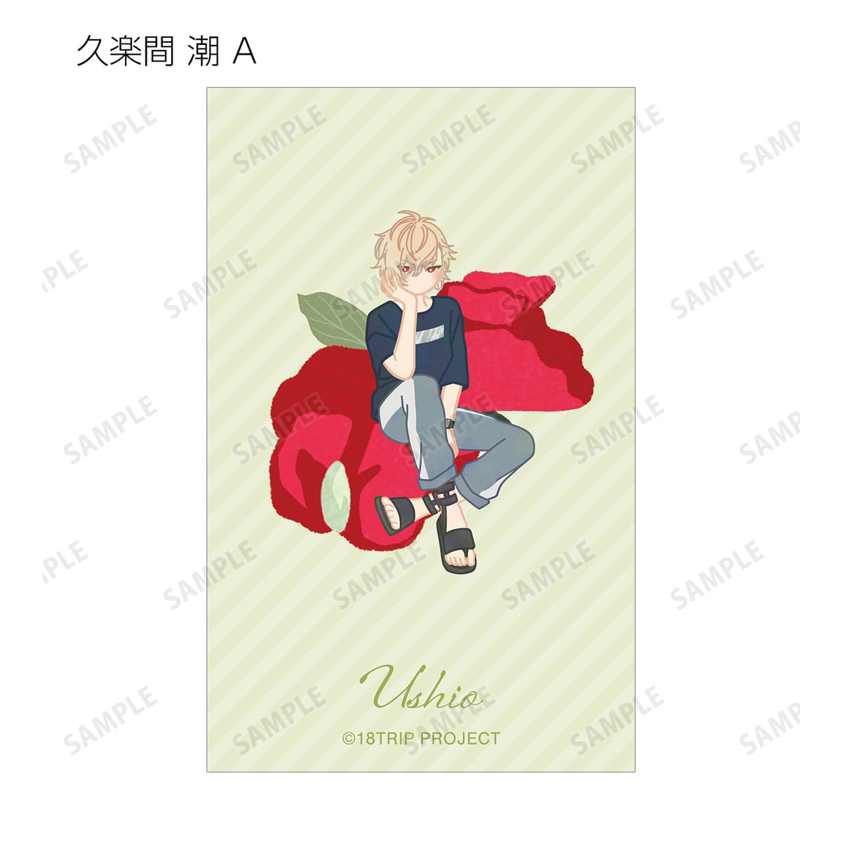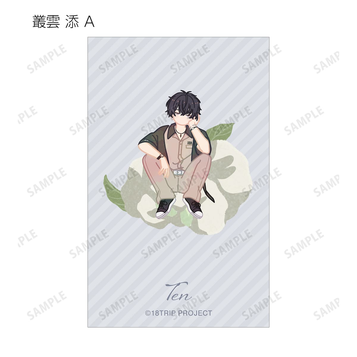 西園 練牙、大黒 可不可、叢雲 添、神名 雪風、鹿 礼光、五十竹 あく太、衣川 季肋、斜木 七基、輝矢 宗氏、久楽間 潮のイラストをボタニカルデザインに落とし込んで繊細なタッチで新たに描き起こし、イラストカードに仕上げました。
