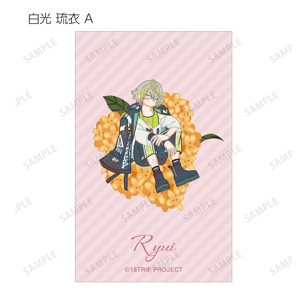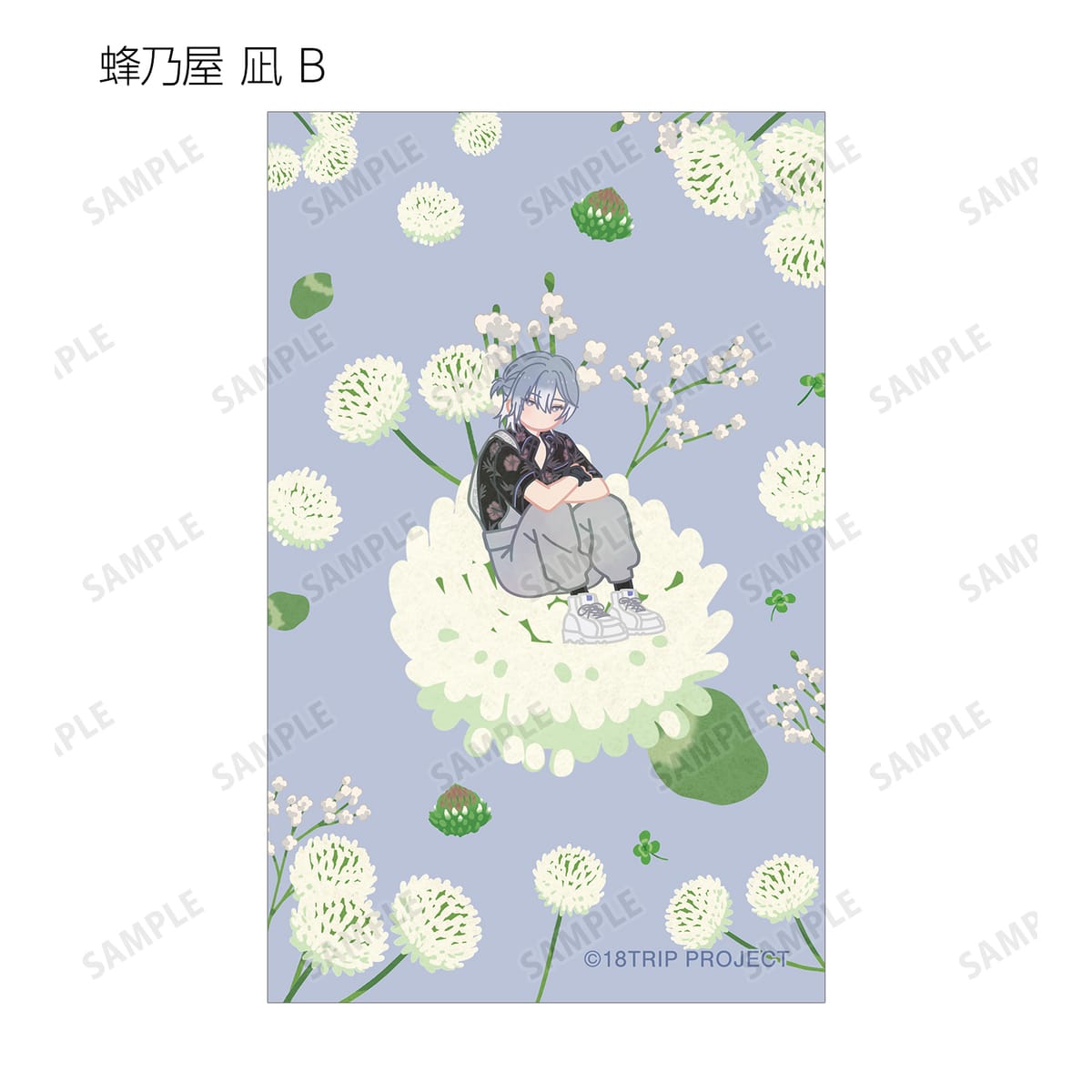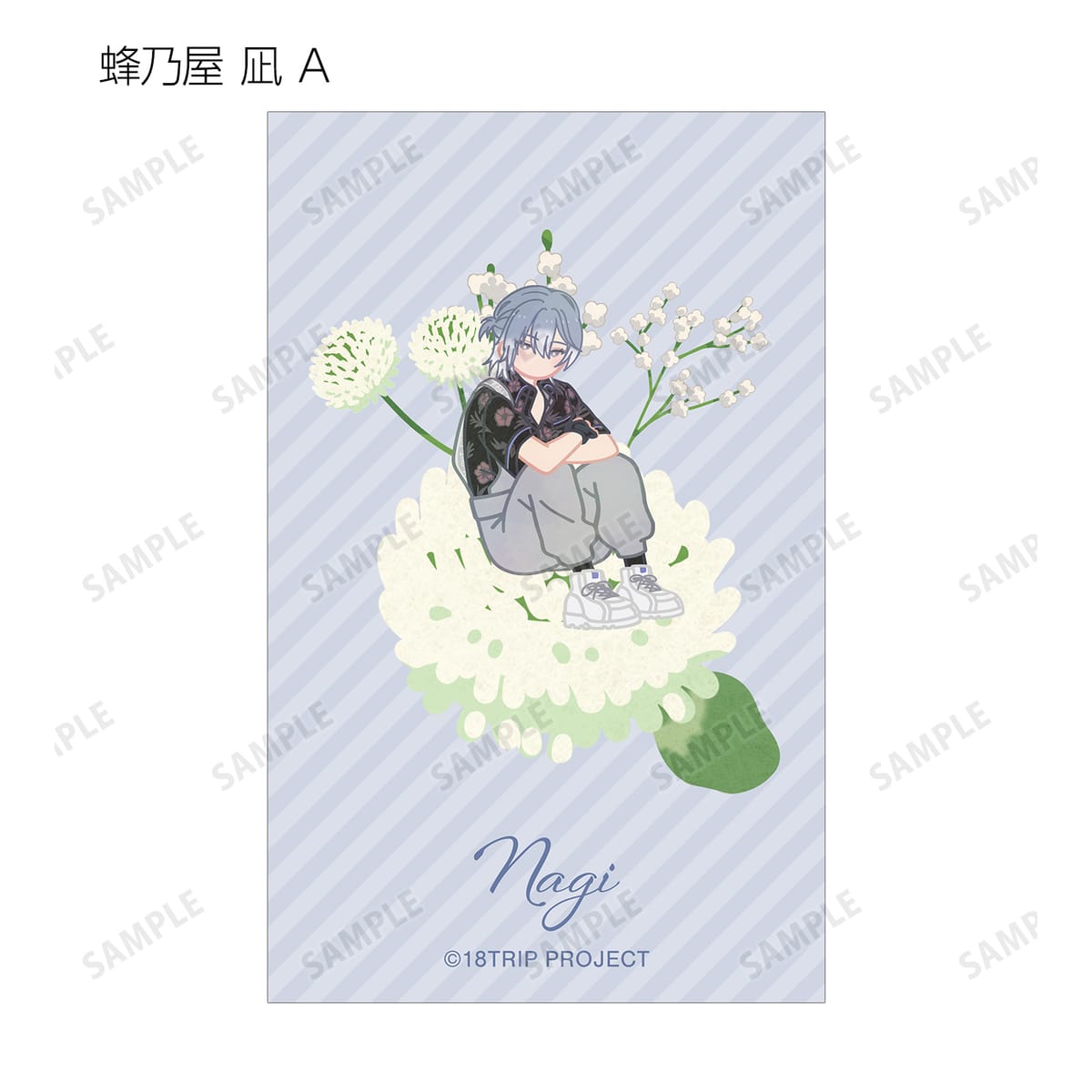 北片 來人、畔川 幾成、夏焼 千弥、木ノ内 太緒、百目鬼 潜、蜂乃屋 凪、白光 糖衣、白光 琉衣、棗 夜鷹、夜半 子タろのイラストをボタニカルデザインに落とし込んで繊細なタッチで新たに描き起こし、イラストカードに仕上げました。