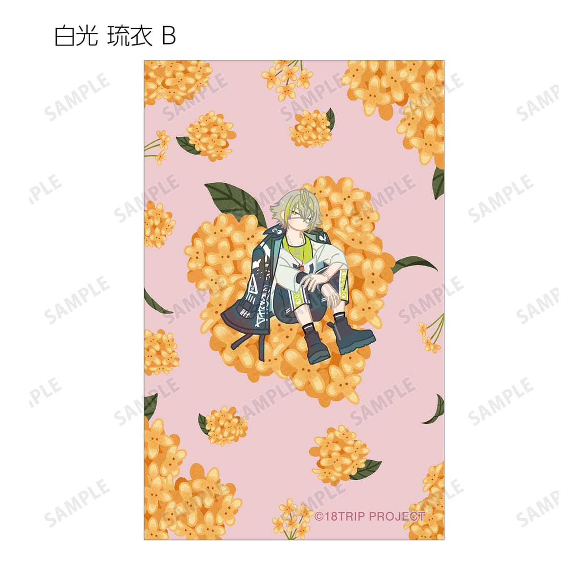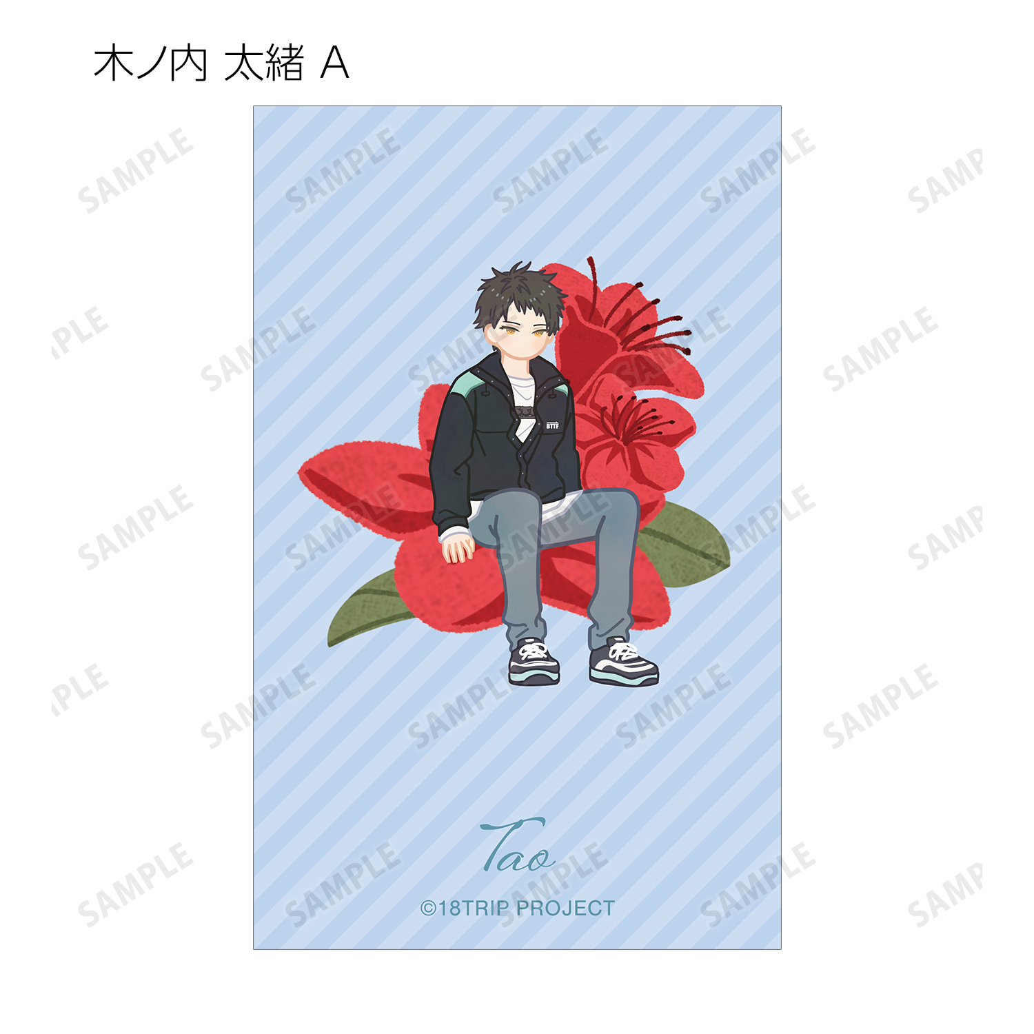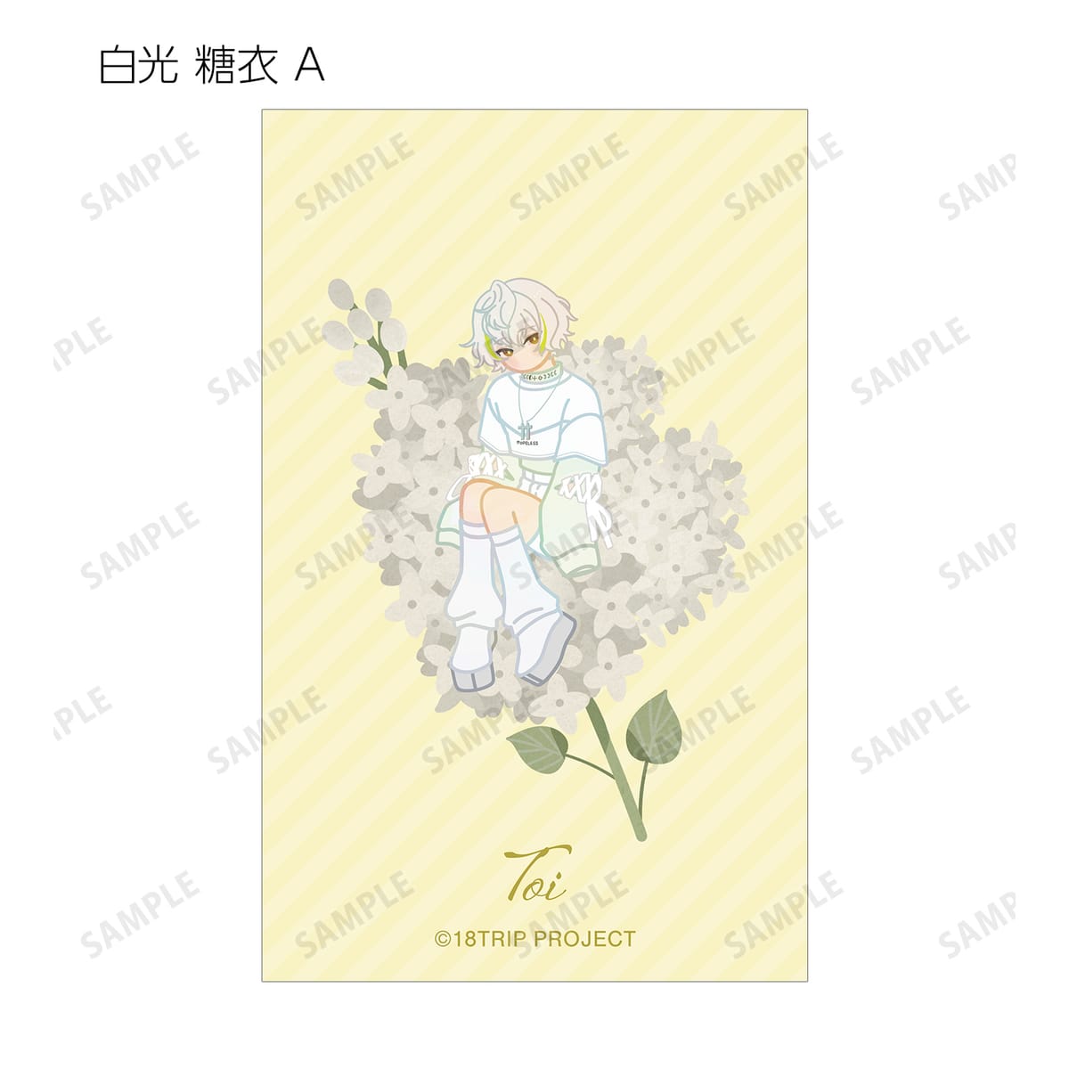 北片 來人、畔川 幾成、夏焼 千弥、木ノ内 太緒、百目鬼 潜、蜂乃屋 凪、白光 糖衣、白光 琉衣、棗 夜鷹、夜半 子タろのイラストをボタニカルデザインに落とし込んで繊細なタッチで新たに描き起こし、イラストカードに仕上げました。
